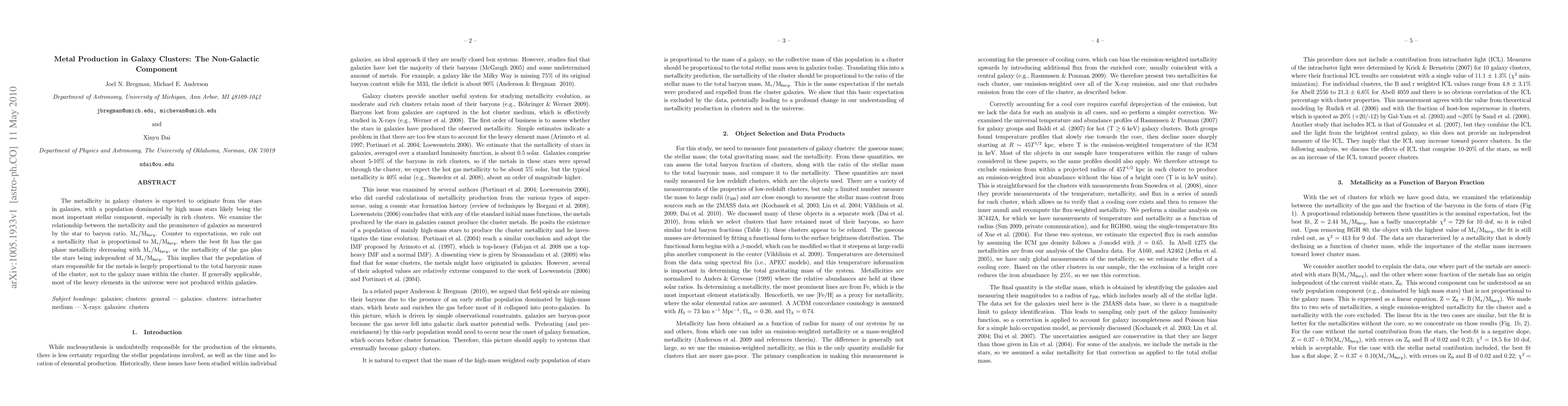 The metallicity in galaxy clusters is expected to originate from the stars in galaxies, with a population dominated by high mass stars likely being the most important stellar component, especially in rich clusters. We examine the relationship between the metallicity and the prominence of galaxies as measured by the star to baryon ratio, M$_*$/M$_{bary}$. Counter to expectations, we rule out a metallicity that is proportional to M$_*$/M$_{bary}$, where the best fit has the gas phase metallicity decreasing with M$_*$/M$_{bary}$, or the metallicity of the gas plus the stars being independent of M$_*$/M$_{bary}$. This implies that the population of stars responsible for the metals is largely proportional to the total baryonic mass of the cluster, not to the galaxy mass within the cluster. If generally applicable, most of the heavy elements in the universe were not produced within galaxies.