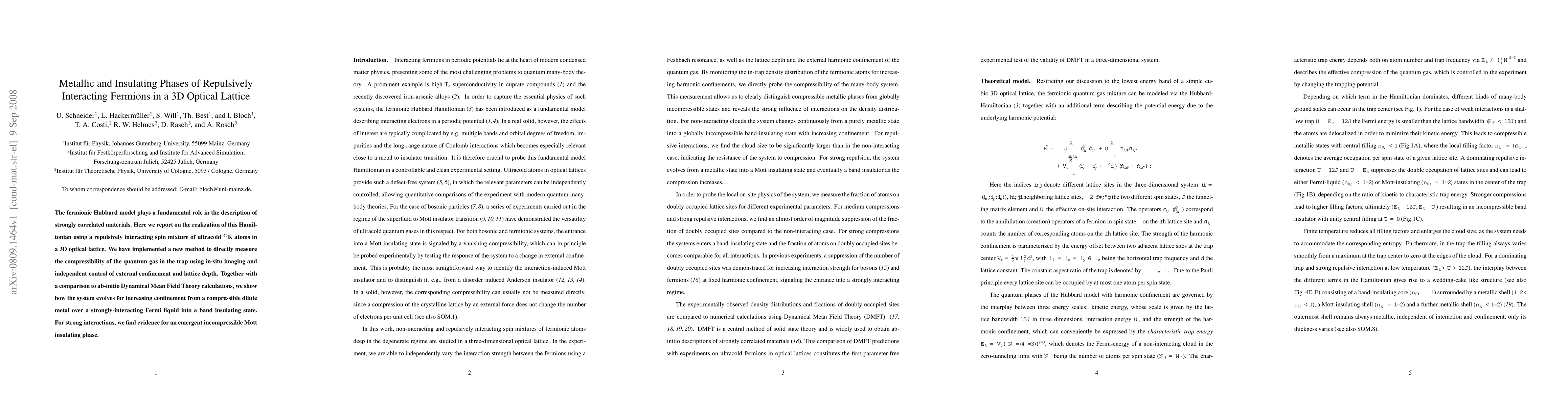 The fermionic Hubbard model plays a fundamental role in the description of strongly correlated materials. Here we report on the realization of this Hamiltonian using a repulsively interacting spin mixture of ultracold $^{40}$K atoms in a 3D optical lattice. We have implemented a new method to directly measure the compressibility of the quantum gas in the trap using in-situ imaging and independent control of external confinement and lattice depth. Together with a comparison to ab-initio Dynamical Mean Field Theory calculations, we show how the system evolves for increasing confinement from a compressible dilute metal over a strongly-interacting Fermi liquid into a band insulating state. For strong interactions, we find evidence for an emergent incompressible Mott insulating phase.
