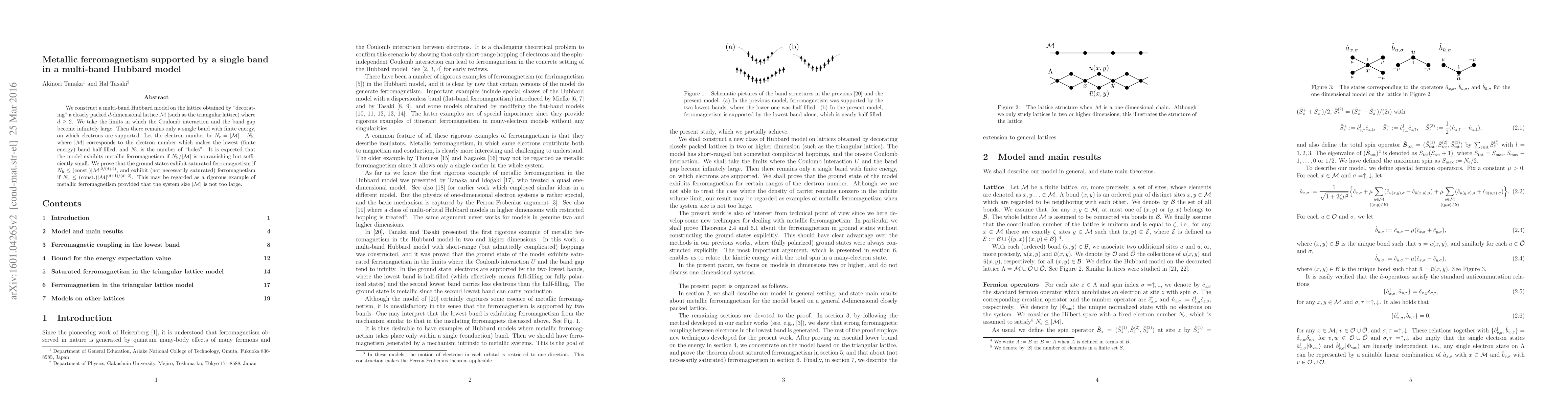 This paper constructs a multi-band Hubbard model on a decorated $d$-dimensional lattice where a single band remains after taking limits of large interaction and band gap. It proves that metallic ferromagnetism emerges under certain conditions on the hole density relative to the lattice size.