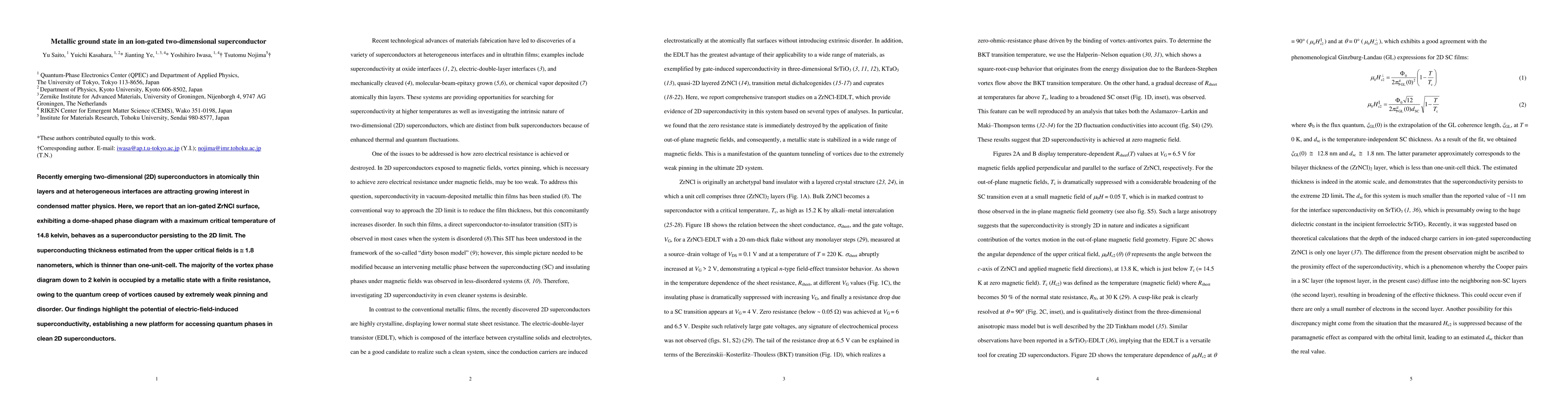 This paper reports on the discovery of a metallic ground state in an ion-gated 2D superconductor on a ZrNCl surface, with a maximum critical temperature of 14.8 K. The superconducting thickness is estimated at ~1.8 nm, thinner than one-unit-cell, and exhibits a metallic state with finite resistance at low temperatures due to quantum creep.