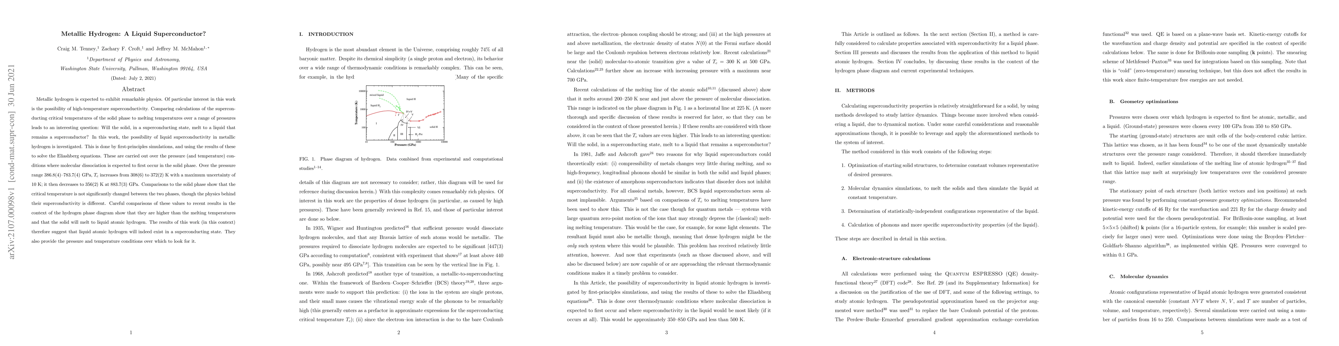 This research investigates the possibility of liquid superconductivity in metallic hydrogen, finding that the solid phase's superconducting critical temperature exceeds the melting point, suggesting that liquid atomic hydrogen could remain superconducting. The study identifies pressure and temperature conditions where this phenomenon is likely to occur.