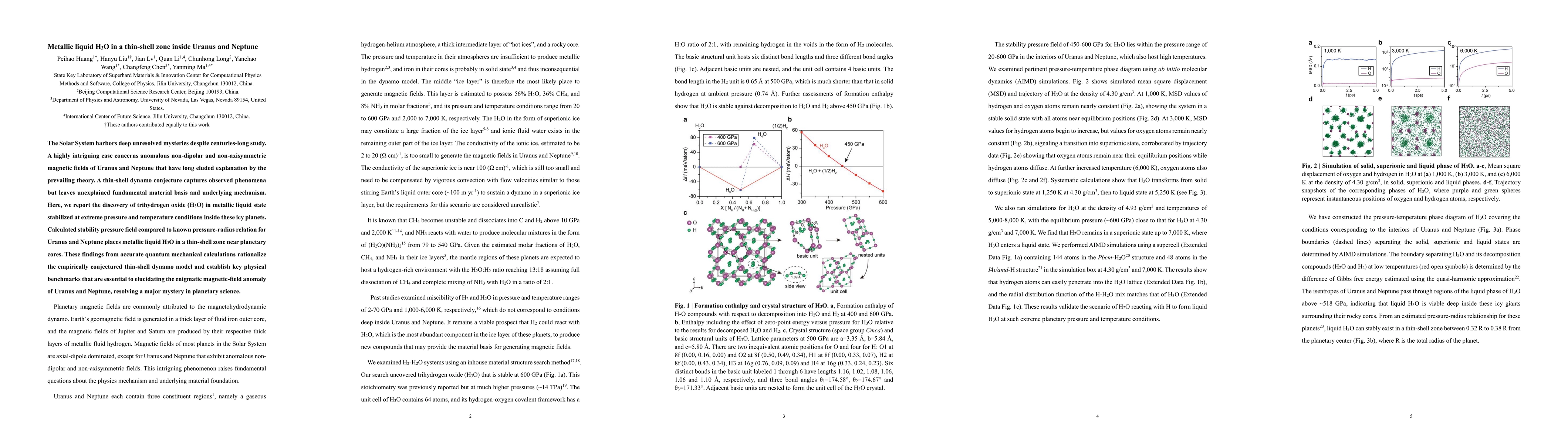 Researchers discovered metallic liquid trihydrogen oxide (H3O) in Uranus and Neptune's cores, resolving a long-standing mystery of their non-dipolar magnetic fields.
