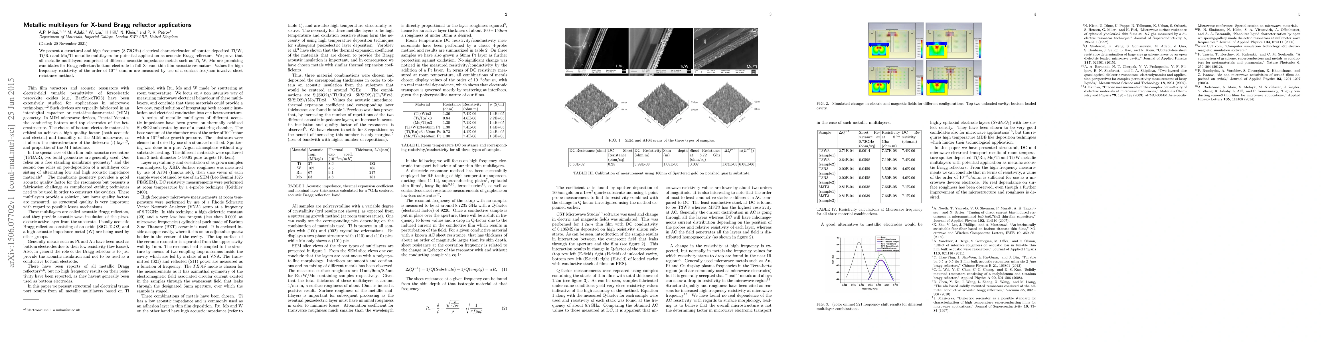 Researchers have developed metallic multilayers with high frequency resistivity suitable for X-band Bragg reflector applications, demonstrating promising candidates for acoustic resonators.