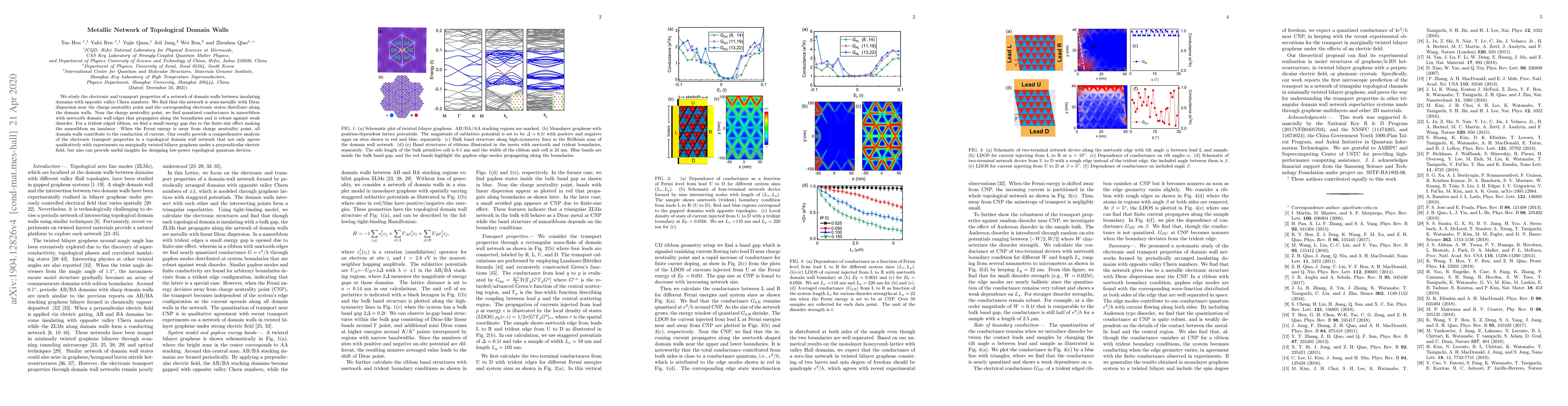 This paper investigates the electronic and transport properties of a network of topological domain walls, revealing semi-metallic behavior with Dirac dispersion near charge neutrality. It demonstrates quantized conductance in nanoribbons with domain wall edges, highlighting potential applications in low-power topological quantum devices.