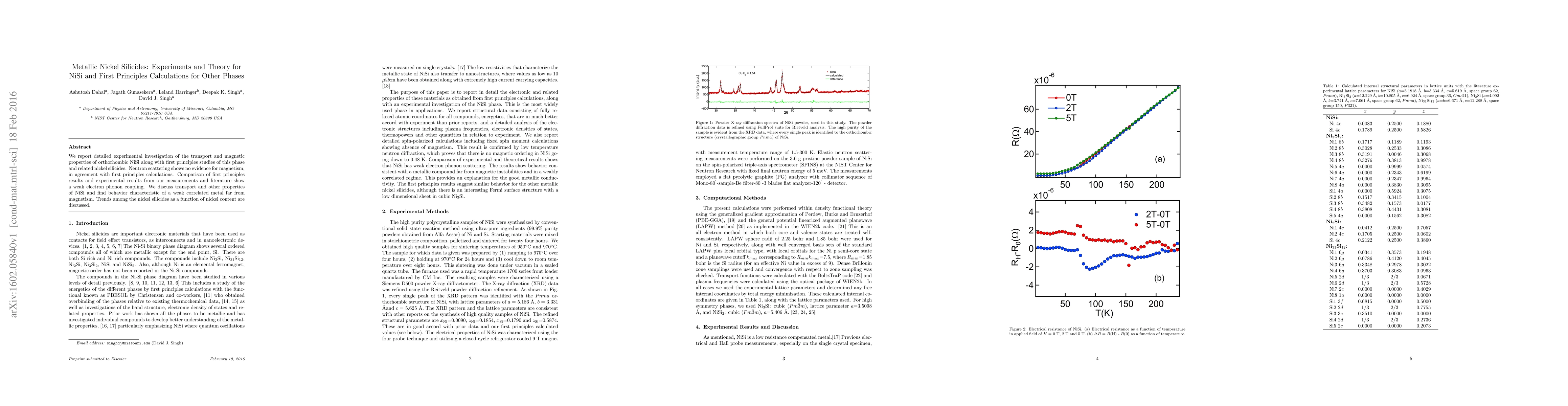 This paper presents an experimental and theoretical study of NiSi, a metallic nickel silicide, revealing its transport and magnetic properties. First principles calculations confirm the absence of magnetism and weak electron-phonon coupling, aligning with experimental findings and indicating NiSi behaves as a weak correlated metal. Trends among various nickel silicides are also analyzed based on nickel content.