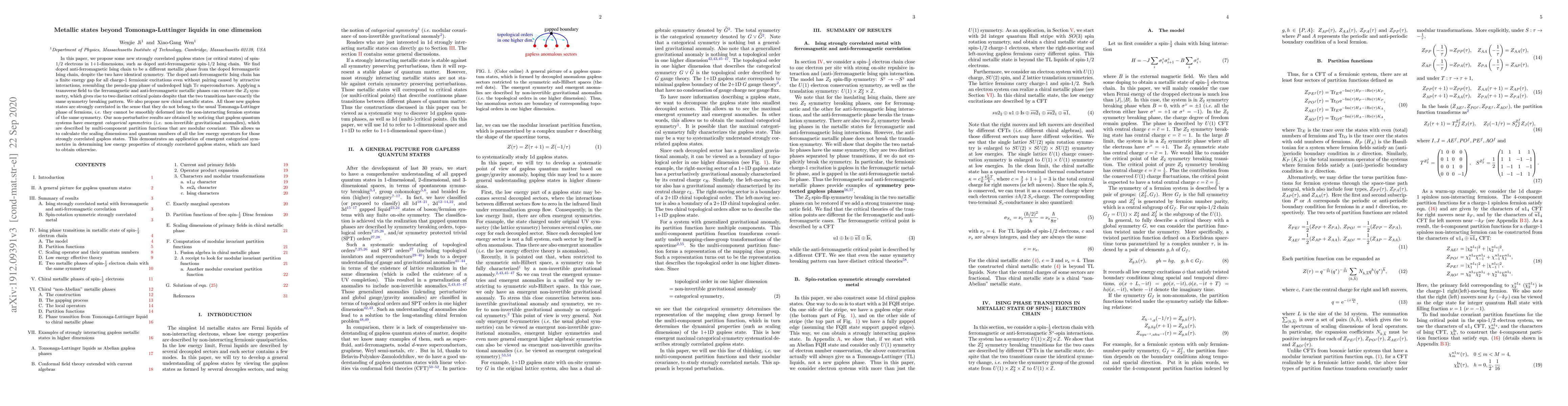 Researchers propose new metallic states in one dimension that differ from Tomonaga-Luttinger liquids and have unique properties, including finite energy gaps and emergent categorical symmetries.