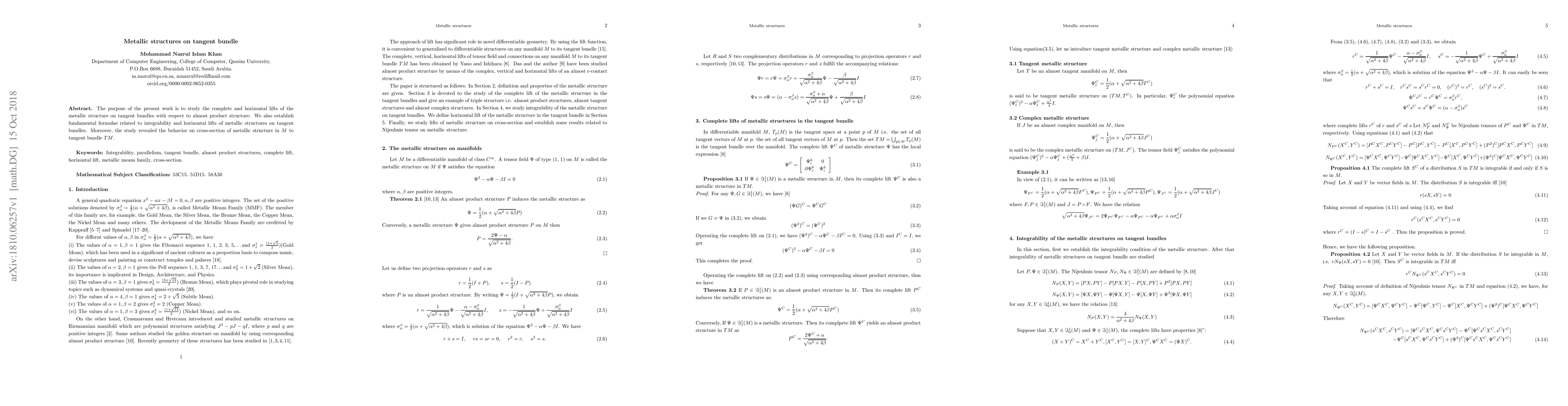 Researchers studied metallic structures on tangent bundles, establishing fundamental formulae for integrability and horizontal lifts, and revealing behavior of cross-sections in relation to almost product structure.