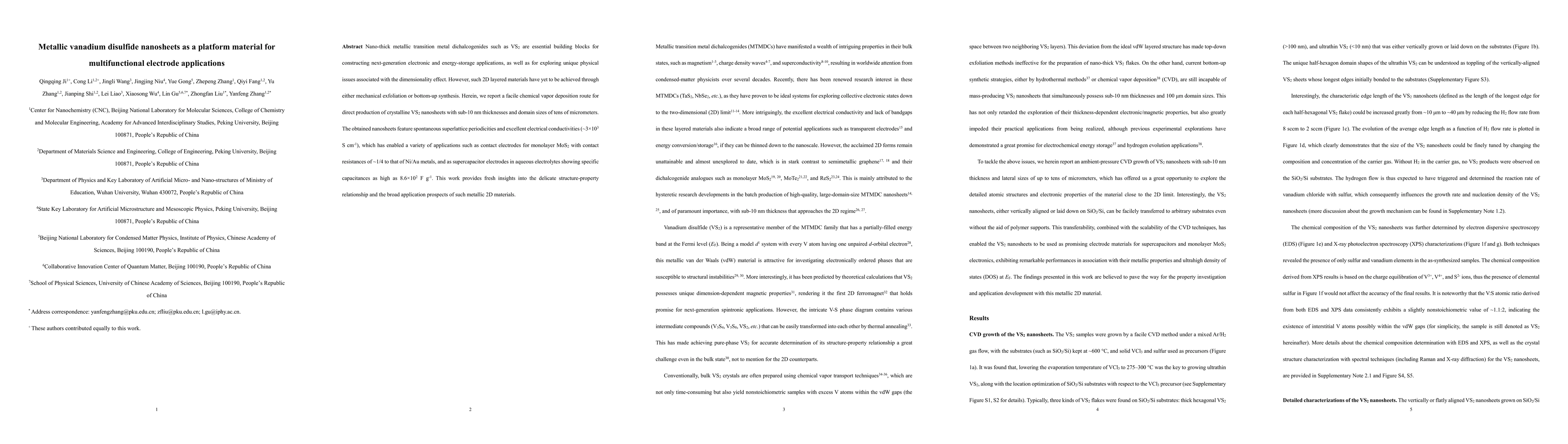 Researchers developed metallic vanadium disulfide nanosheets through chemical vapor deposition, enabling applications as contact electrodes and supercapacitor electrodes with high electrical conductivities and specific capacitances.