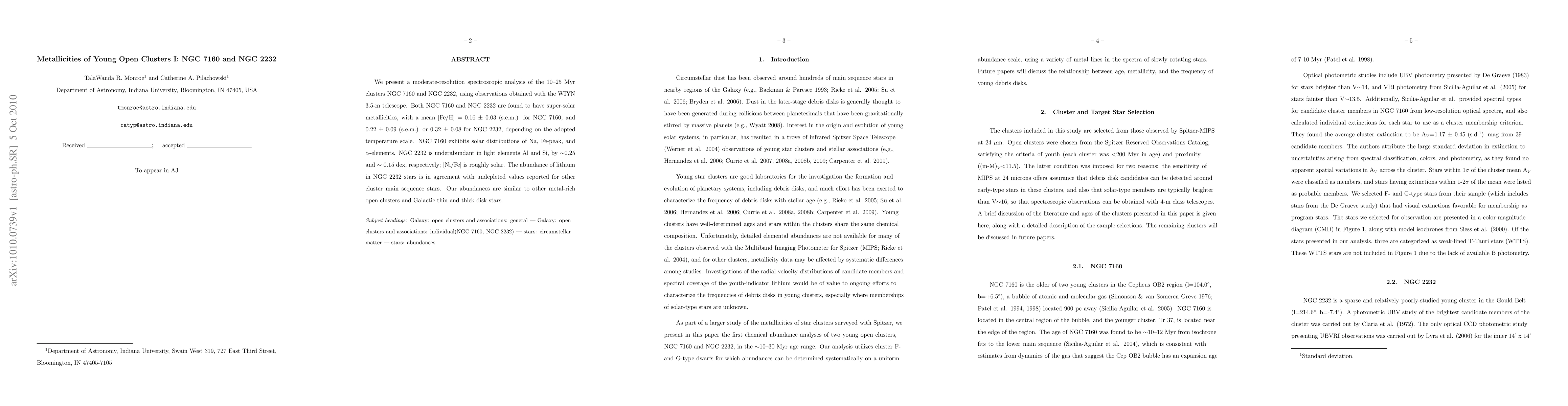 We present a moderate-resolution spectroscopic analysis of the 10-25 Myr clusters NGC 7160 and NGC 2232, using observations obtained with the WIYN 3.5-m telescope. Both NGC 7160 and NGC 2232 are found to have super-solar metallicities, with a mean [Fe/H] = 0.16 \pm 0.03 (s.e.m.) for NGC 7160, and 0.22 \pm 0.09 (s.e.m.) or 0.32 \pm 0.08 for NGC 2232, depending on the adopted temperature scale. NGC 7160 exhibits solar distributions of Na, Fe-peak, and {\alpha}-elements. NGC 2232 is underabundant in light elements Al and Si, by ~0.25 and ~ 0.15 dex, respectively; [Ni/Fe] is roughly solar. The abundance of lithium in NGC 2232 stars is in agreement with undepleted values reported for other cluster main sequence stars. Our abundances are similar to other metal-rich open clusters and Galactic thin and thick disk stars.