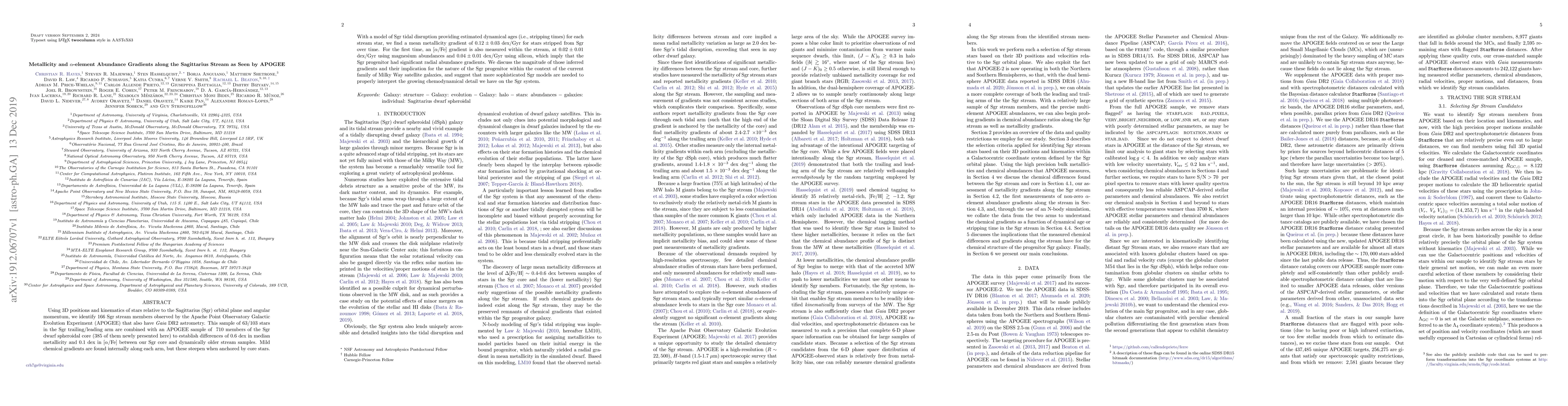 This paper uses APOGEE data to identify and analyze metallicity and $\alpha$-element abundance gradients of the Sagittarius Stream, revealing a 0.6 dex difference in median metallicity between the Sgr core and stream. It finds a mean metallicity gradient of 0.12 +/- 0.03 dex/Gyr and an $\alpha$/Fe gradient of 0.02 +/- 0.01 dex/Gyr, suggesting significant radial abundance gradients in the Sgr progenitor.
