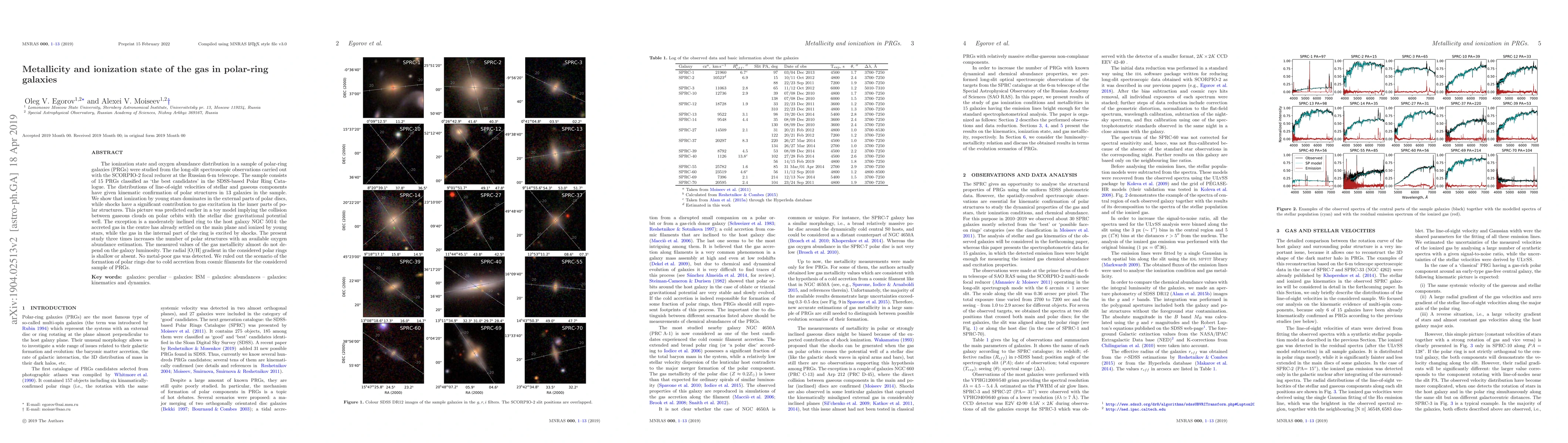 The ionization state and oxygen abundance distribution in a sample of polar-ring galaxies (PRGs) were studied from the long-slit spectroscopic observations carried out with the SCORPIO-2 focal reducer at the Russian 6-m telescope. The sample consists of 15 PRGs classified as `the best candidates' in the SDSS-based Polar Ring Catalogue. The distributions of line-of-sight velocities of stellar and gaseous components have given kinematic confirmation of polar structures in 13 galaxies in the sample. We show that ionization by young stars dominates in the external parts of polar discs, while shocks have a significant contribution to gas excitation in the inner parts of polar structures. This picture was predicted earlier in a toy model implying the collision between gaseous clouds on polar orbits with the stellar disc gravitational potential well. The exception is a moderately inclined ring to the host galaxy NGC 5014: the accreted gas in the centre has already settled on the main plane and ionized by young stars, while the gas in the internal part of the ring is excited by shocks. The present study three times increases the number of polar structures with an available oxygen abundance estimation. The measured values of the gas metallicity almost do not depend on the galaxy luminosity. The radial [O/H] gradient in the considered polar rings is shallow or absent. No metal-poor gas was detected. We ruled out the scenario of the formation of polar rings due to cold accretion from cosmic filaments for the considered sample of PRGs.