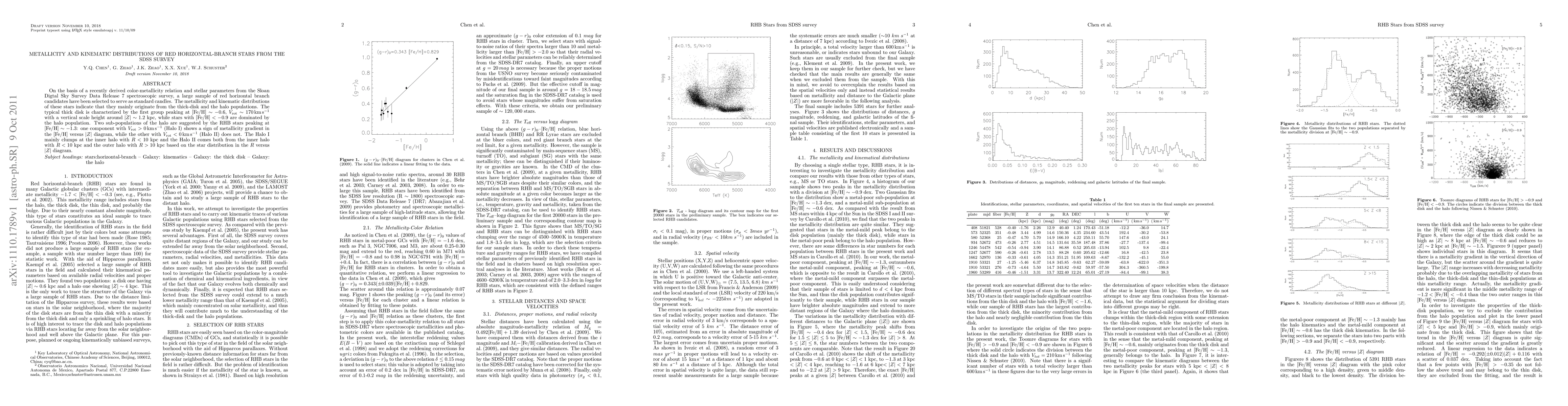 This study uses SDSS data to analyze red horizontal branch stars, identifying two main populations: a thick-disk group with moderate metallicity and high rotation velocity, and a halo group with lower metallicity, further divided into inner and outer halo sub-populations with distinct rotation velocities and metallicity gradients.