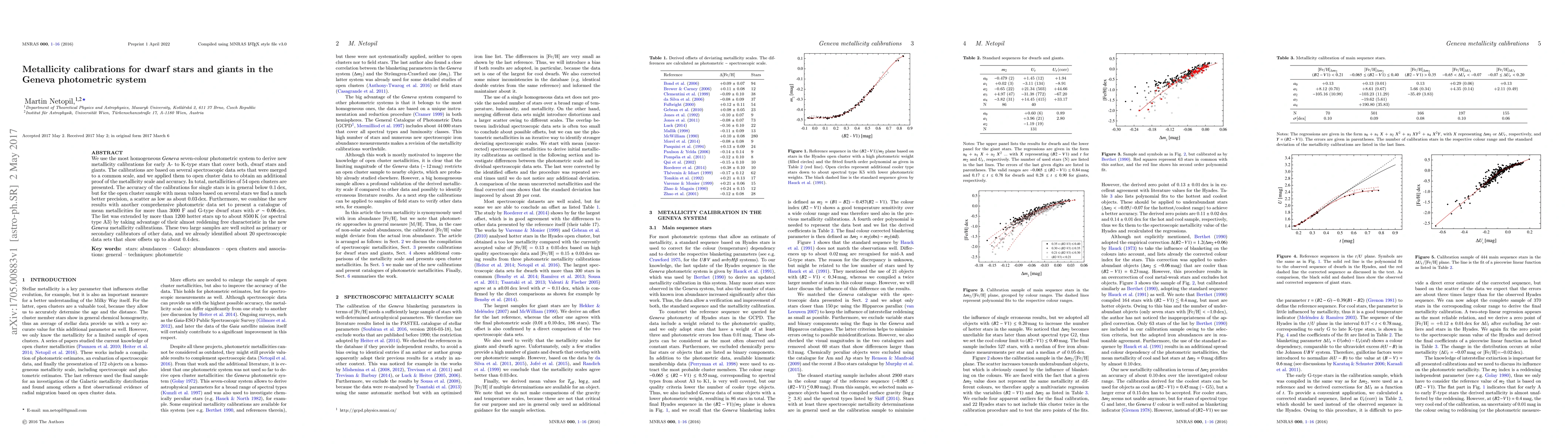 This paper presents new metallicity calibrations for early A- to K-type stars in the Geneva photometric system, based on merged spectroscopic data and validated with open cluster data. The calibrations achieve an accuracy of below 0.1 dex for single stars and about 0.03 dex for open clusters, and they extend to over 3000 F and G-type dwarf stars and 1200 hotter stars, providing a robust dataset for calibrating other stellar data.