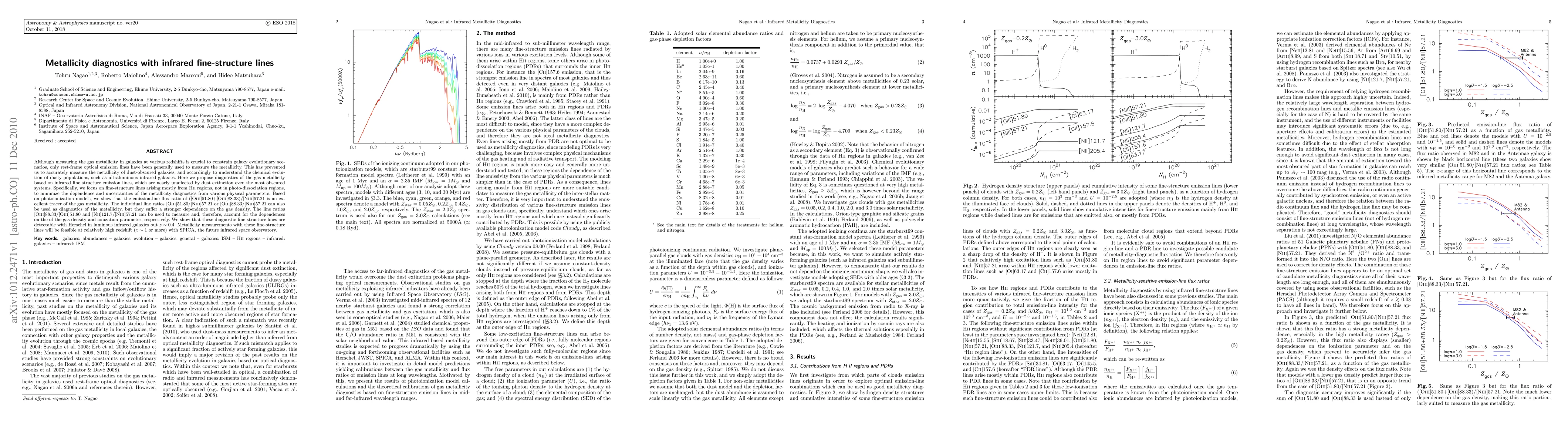 This paper proposes new diagnostics for measuring gas metallicity in galaxies using infrared fine-structure emission lines, which are less affected by dust extinction. The study suggests that the flux ratio of ([OIII]51.80+[OIII]88.33)/[NIII]57.21 is an effective metallicity tracer, especially in HII regions, and highlights the potential of future infrared observatories like SPICA for high-redshift measurements.