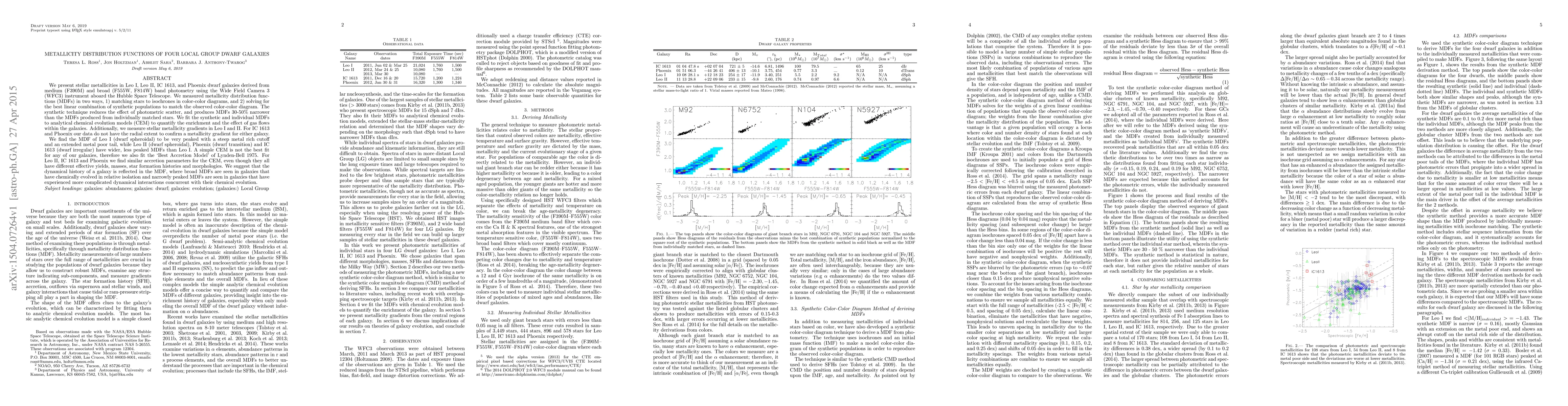 This paper investigates the metallicity distribution functions (MDFs) of four Local Group dwarf galaxies using Hubble Space Telescope data. It finds that the MDFs vary significantly, with Leo I showing a very peaked distribution, while Leo II, Phoenix, and IC 1613 exhibit broader, less peaked MDFs. The study suggests that a galaxy's dynamical history influences its MDF, with isolated evolution leading to broader MDFs and more complex interactions causing narrower ones.