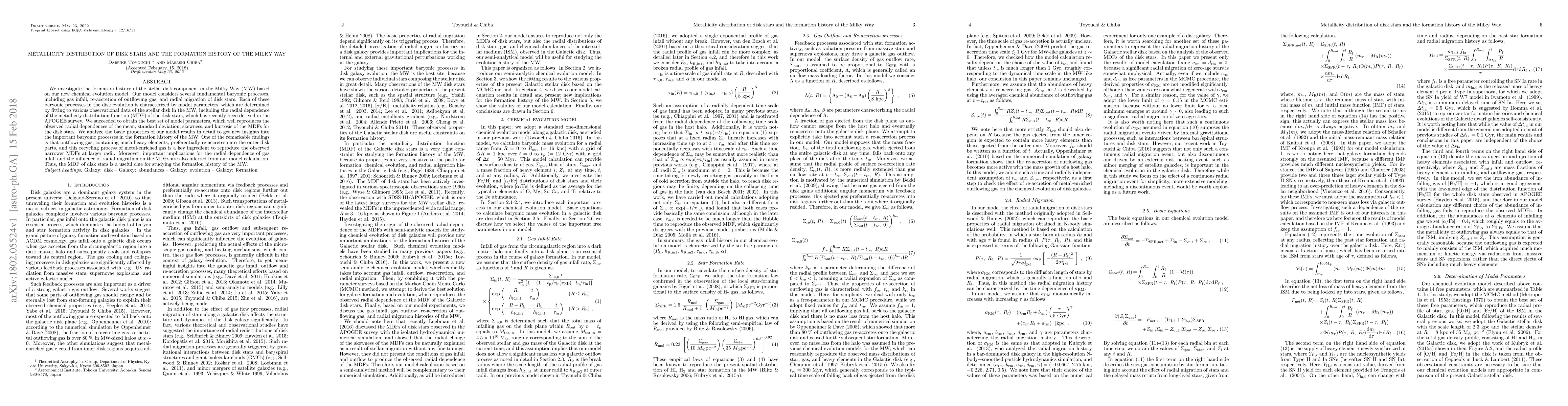 We investigate the formation history of the stellar disk component in the Milky Way (MW) based on our new chemical evolution model. Our model considers several fundamental baryonic processes, including gas infall, re-accretion of outflowing gas, and radial migration of disk stars. Each of these baryonic processes in the disk evolution is characterized by model parameters, which are determined by fitting to various observational data of the stellar disk in the MW, including the radial dependence of the metallicity distribution function (MDF) of the disk stars, which has recently been derived in the APOGEE survey. We succeeded to obtain the best set of model parameters, which well reproduces the observed radial dependences of the mean, standard deviation, skewness, and kurtosis of the MDFs for the disk stars. We analyze the basic properties of our model results in detail to get new insights into the important baryonic processes in the formation history of the MW. One of the remarkable findings is that outflowing gas, containing much heavy elements, preferentially re-accretes onto the outer disk parts, and this recycling process of metal-enriched gas is a key ingredient to reproduce the observed narrower MDFs at larger radii. Moreover, important implications for the radial dependence of gas infall and the influence of radial migration on the MDFs are also inferred from our model calculation. Thus, the MDF of disk stars is a useful clue for studying the formation history of the MW.