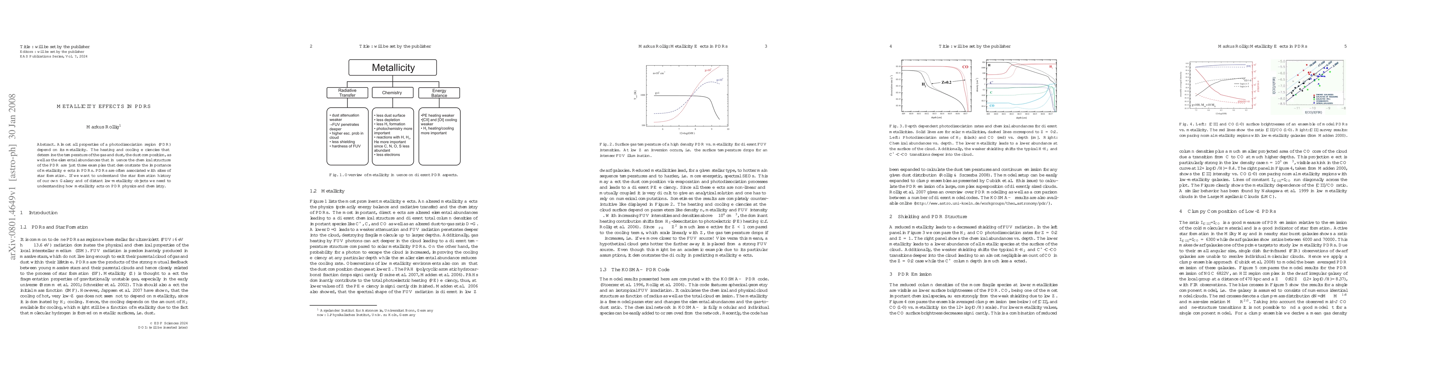 This paper explores how varying metallicity influences photodissociation regions (PDRs), affecting heating/cooling efficiency, dust composition, and elemental abundances crucial for understanding star formation history in galaxies. Understanding metallicity's role in PDRs is essential for interpreting star formation in both our Galaxy and low-metallicity distant objects.