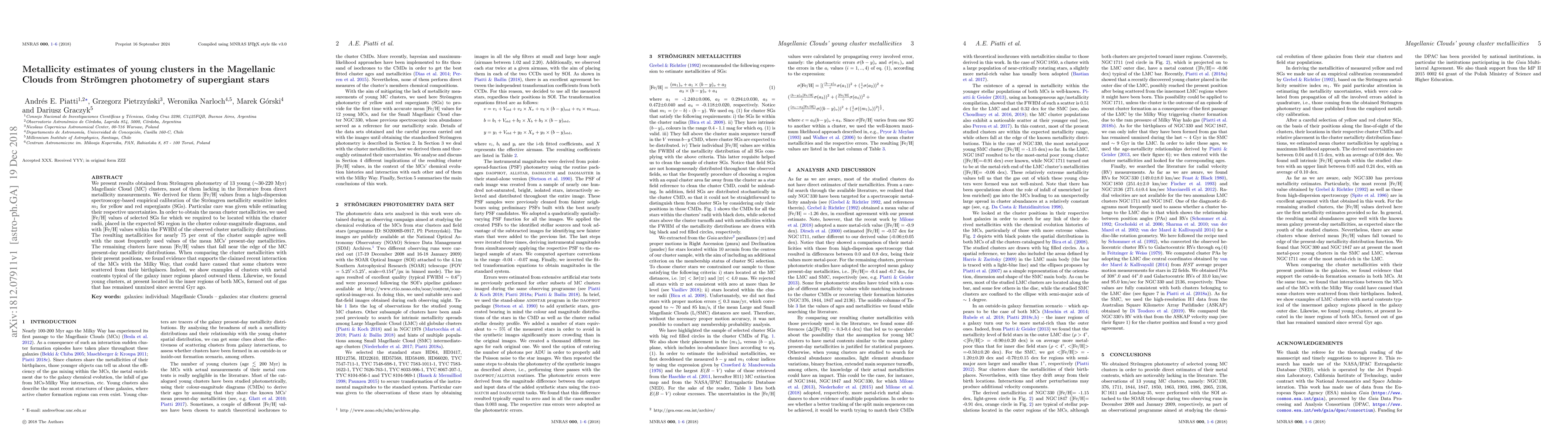 This study derives metallicities for 13 young Magellanic Cloud clusters using Stromgren photometry of supergiant stars, finding that most clusters align with current mean MC metallicities, while some suggest recent Milky Way interactions scattered clusters with atypical metal contents.