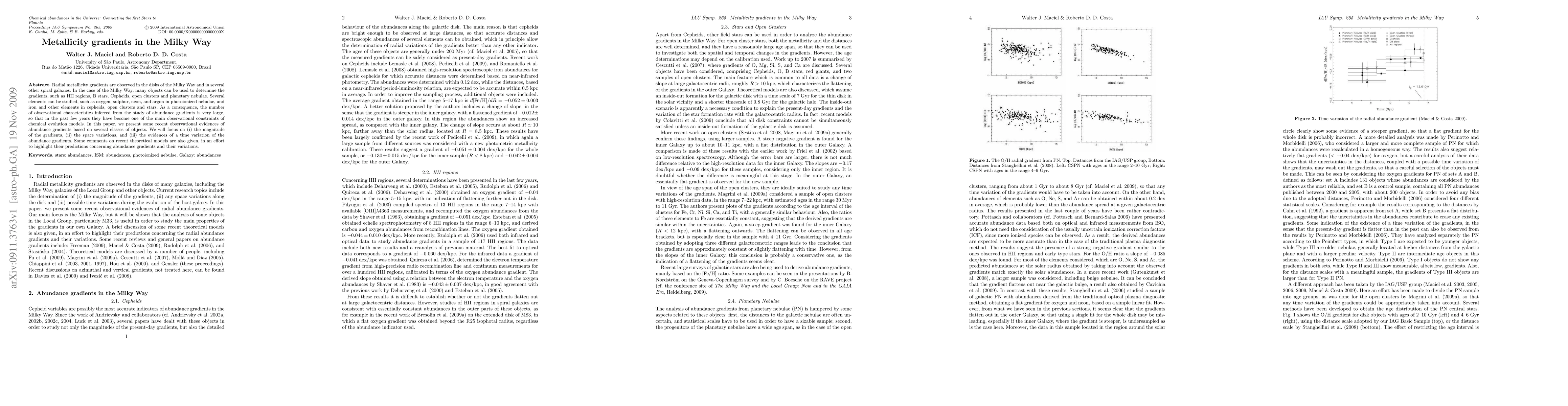 This paper investigates the radial metallicity gradients in the Milky Way using various astronomical objects, focusing on the magnitude, spatial, and temporal variations of these gradients. It also discusses recent theoretical models and their predictions regarding these gradients.