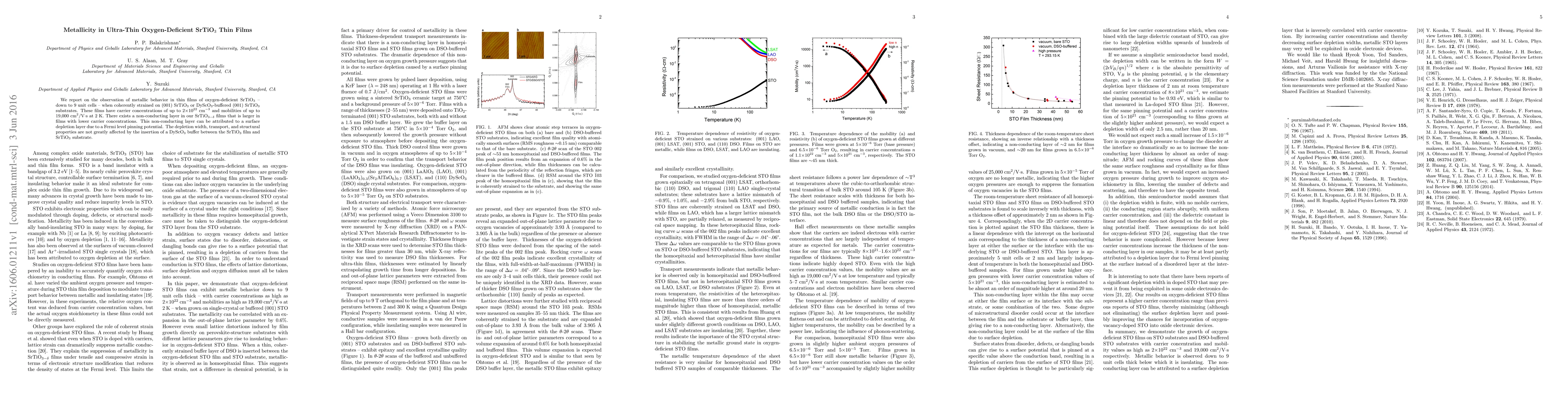 The study presents a method for growing high-quality, ultra-thin oxygen-deficient SrTiO3 films with tunable metallic properties, which could be beneficial for oxide electronics.