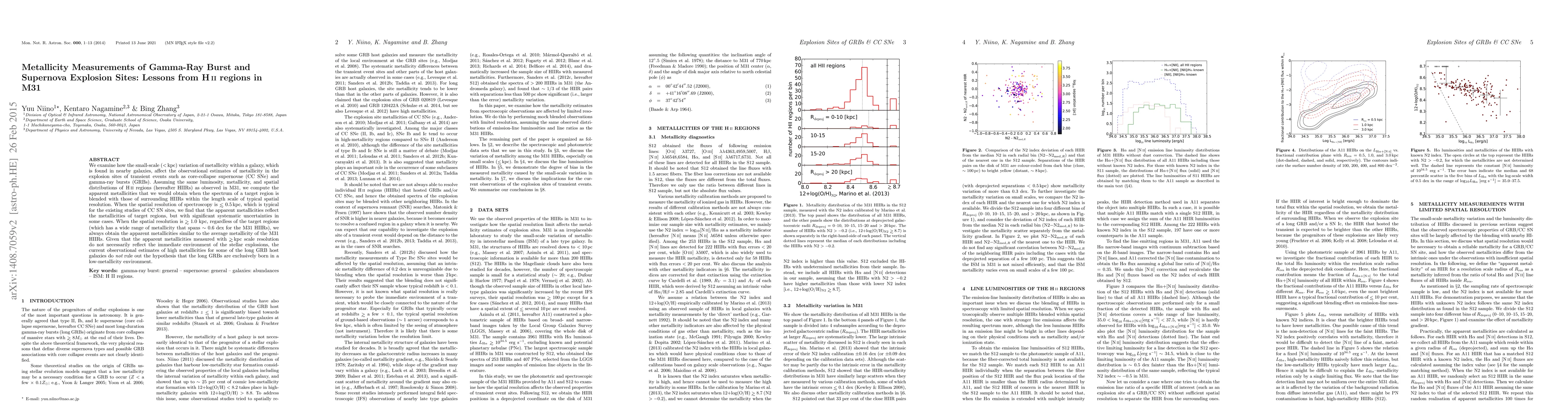 We examine how the small-scale ($<$\,kpc) variation of metallicity within a galaxy, which is found in nearby galaxies, affect the observational estimates of metallicity in the explosion sites of transient events such as core-collapse supernovae (CC SNe) and gamma-ray bursts (GRBs). Assuming the same luminosity, metallicity, and spatial distributions of \ion{H}{ii}\ regions (hereafter HIIRs) as observed in M31, we compute the apparent metallicities that we would obtain when the spectrum of a target region is blended with those of surrounding HIIRs within the length scale of typical spatial resolution. When the spatial resolution of spectroscopy is $\lesssim$ 0.5\,kpc, which is typical for the existing studies of CC SN sites, we find that the apparent metallicities reflect the metallicities of target regions, but with significant systematic uncertainties in some cases. When the spatial resolution is $\gtrsim$ 1.0 kpc, regardless of the target regions (which has a wide range of metallicity that spans $\sim$ 0.6 dex for the M31 HIIRs), we always obtain the apparent metallicities similar to the average metallicity of the M31 HIIRs. Given that the apparent metallicities measured with $\gtrsim$\,kpc scale resolution do not necessarily reflect the immediate environment of the stellar explosions, the current observational estimates of high metallicities for some of the long GRB host galaxies do {\em not} rule out the hypothesis that the long GRBs are exclusively born in a low-metallicity environment.