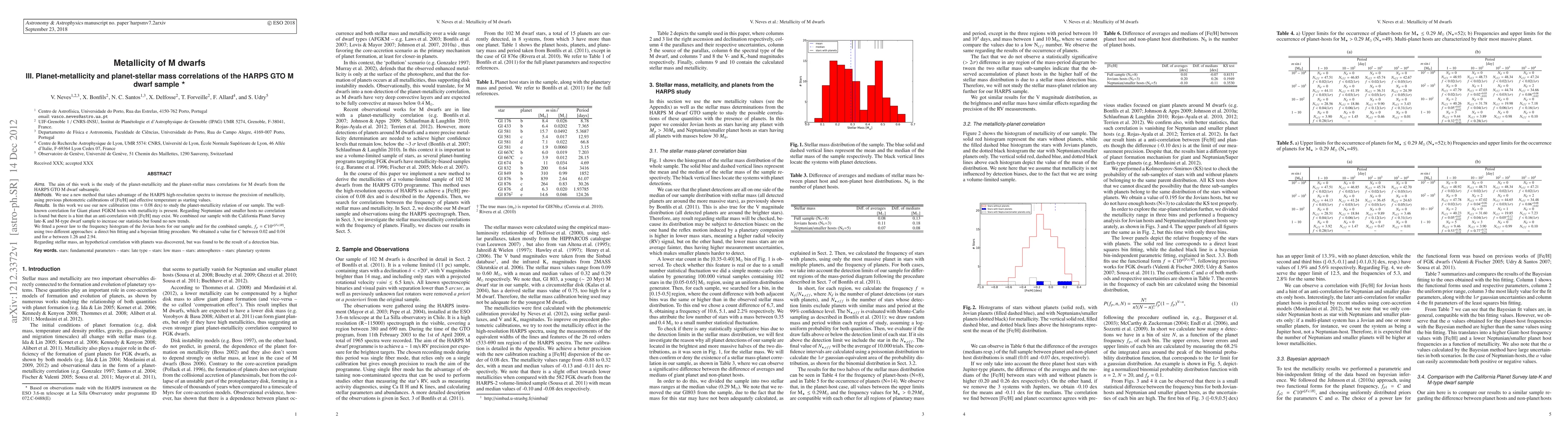 This study investigates the planet-metallicity and planet-stellar mass correlations in M dwarfs using the HARPS GTO M dwarf sample. The results show a well-known correlation between metallicity and giant planets but no clear correlation for smaller planets, with a possible anti-correlation hint. An observed correlation between stellar mass and planets is attributed to detection bias.