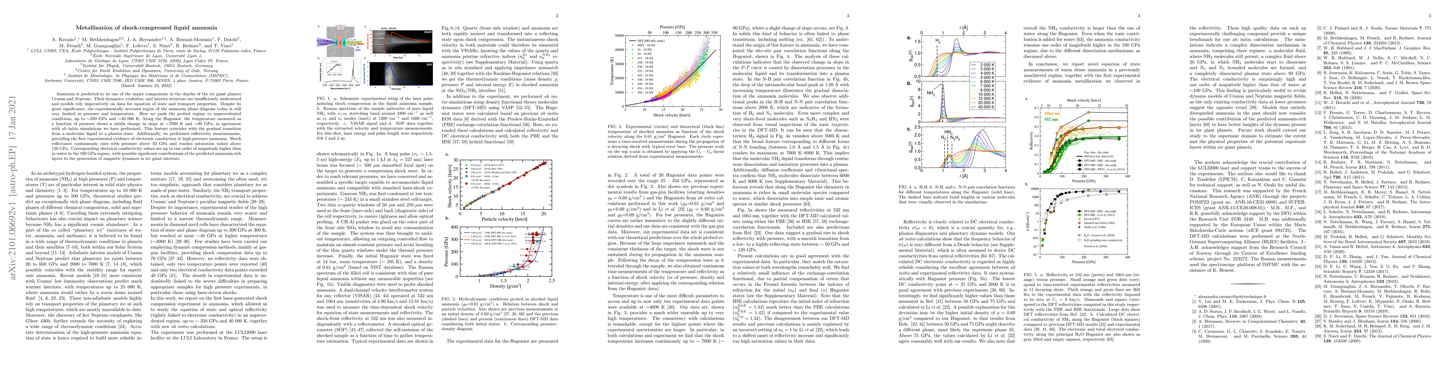This study investigates the metallization of shock-compressed liquid ammonia under extreme conditions, reaching up to 350 GPa and 40000 K. The research reveals a transition from molecular liquid to plasma at around 7000 K and 90 GPa, accompanied by significant increases in electronic conduction and electrical conductivity, suggesting potential implications for the magnetic dynamos in ice giants.