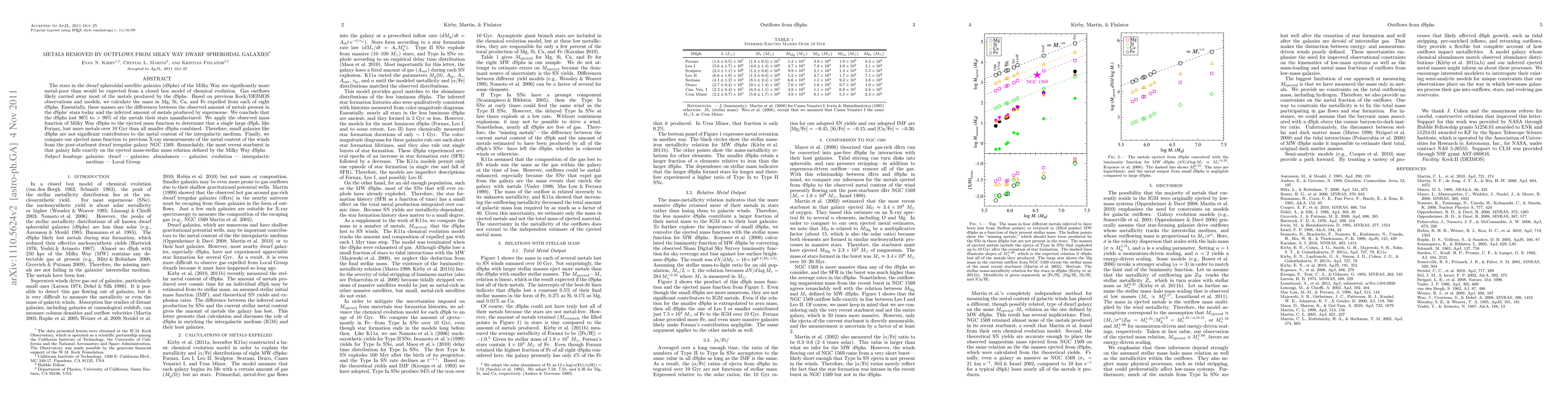 The stars in the dwarf spheroidal satellite galaxies (dSphs) of the Milky Way are significantly more metal-poor than would be expected from a closed box model of chemical evolution. Gas outflows likely carried away most of the metals produced by the dSphs. Based on previous Keck/DEIMOS observations and models, we calculate the mass in Mg, Si, Ca, and Fe expelled from each of eight dSphs. Essentially, these masses are the differences between the observed amount of metals present in the dSphs' stars today and the inferred amount of metals produced by supernovae. We conclude that the dSphs lost 96% to >99% of the metals their stars manufactured. We apply the observed mass function of Milky Way dSphs to the ejected mass function to determine that a single large dSph, like Fornax, lost more metals over 10 Gyr than all smaller dSphs combined. Therefore, small galaxies like dSphs are not significant contributors to the metal content of the intergalactic medium. Finally, we compare our ejected mass function to previous X-ray measurements of the metal content of the winds from the post-starburst dwarf irregular galaxy NGC 1569. Remarkably, the most recent starburst in that galaxy falls exactly on the ejected mass-stellar mass relation defined by the Milky Way dSphs.