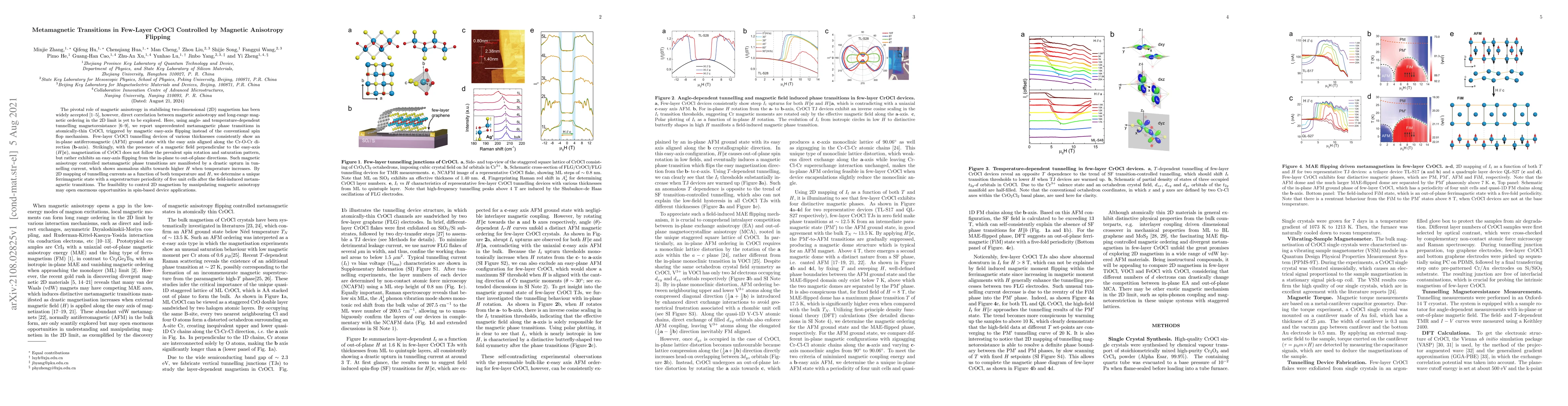 This paper reports on metamagnetic phase transitions in few-layer CrOCl, driven by magnetic anisotropy flipping rather than the conventional spin flop mechanism. The study reveals an in-plane antiferromagnetic ground state and an unusual easy-axis flipping under perpendicular magnetic fields, leading to potential advancements in spin-based device applications.