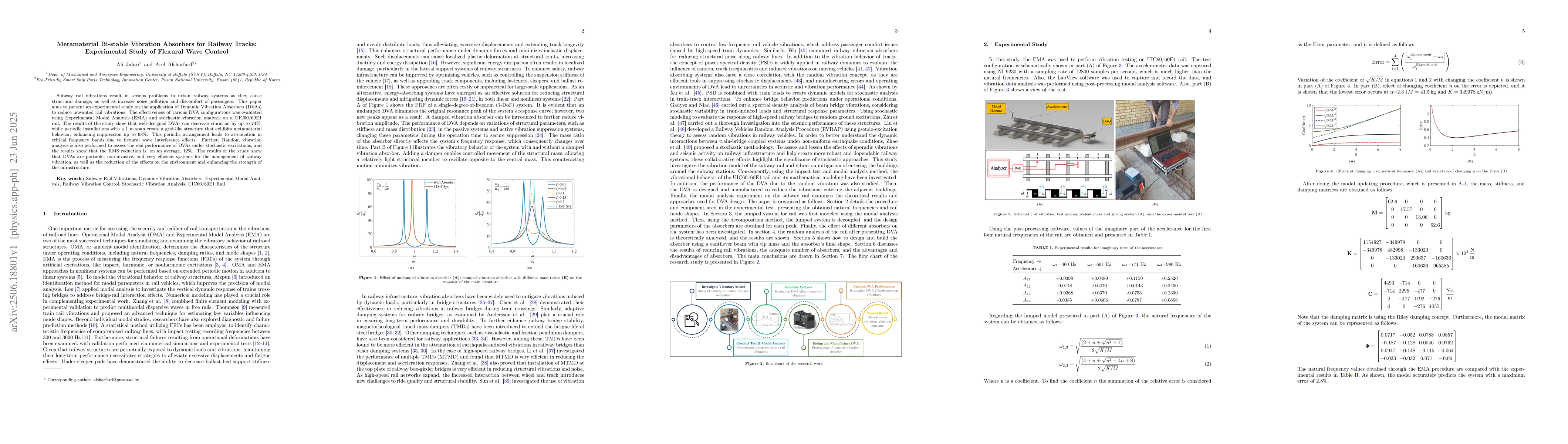 Subway rail vibrations result in serious problems in urban railway systems as they cause structural damage, as well as increase noise pollution and discomfort of passengers. This paper aims to present an experimental study on the application of Dynamic Vibration Absorbers (DVAs) to reduce unwanted rail vibrations. The effectiveness of various DVA configurations was evaluated using Experimental Modal Analysis (EMA) and stochastic vibration analysis on a UIC60/60E1 rail. The results of the study show that well-designed DVAs can decrease vibration by up to 74%, while periodic installations with a 1 m span create a grid-like structure that exhibits metamaterial behavior, enhancing suppression up to 98%. This periodic arrangement leads to attenuation in critical frequency bands due to flexural wave interference effects. Further, Random vibration analysis is also performed to assess the real performance of DVAs under stochastic excitations, and the results show that the RMS reduction is, on an average, 12%. The results of the study show that DVAs are portable, non-invasive, and very efficient systems for the management of railway vibration, as well as the reduction of the effects on the environment and enhancing the strength of the infrastructure.
