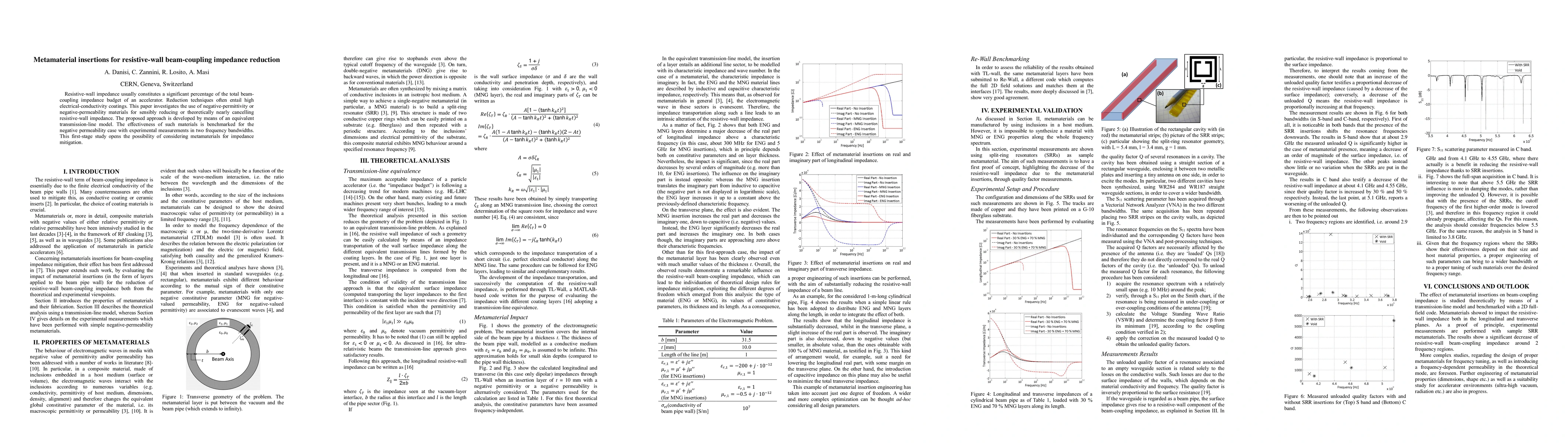 This paper explores the use of negative-permittivity or negative-permeability metamaterials to reduce resistive-wall beam-coupling impedance in accelerators, proposing an equivalent transmission-line model and validating the approach experimentally in two frequency bands. The study suggests metamaterials as a potential solution for impedance mitigation.