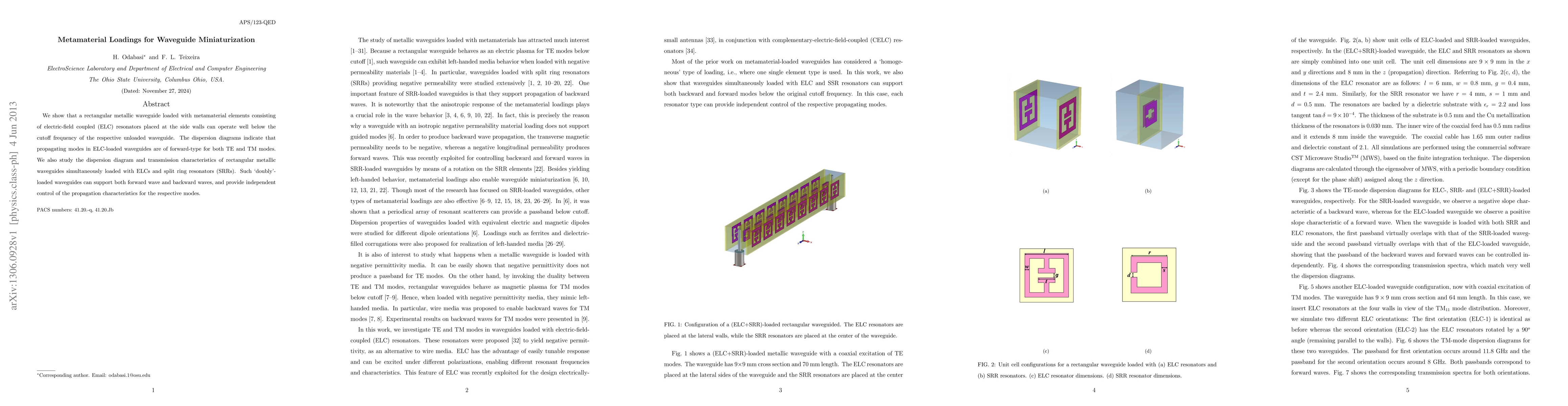 This paper demonstrates that metamaterial loadings, specifically electric-field coupled resonators (ELCs), can enable rectangular metallic waveguides to operate below their cutoff frequency, supporting both TE and TM modes. Additionally, waveguides loaded with both ELCs and split ring resonators (SRRs) can support both forward and backward waves, offering independent control over propagation characteristics.