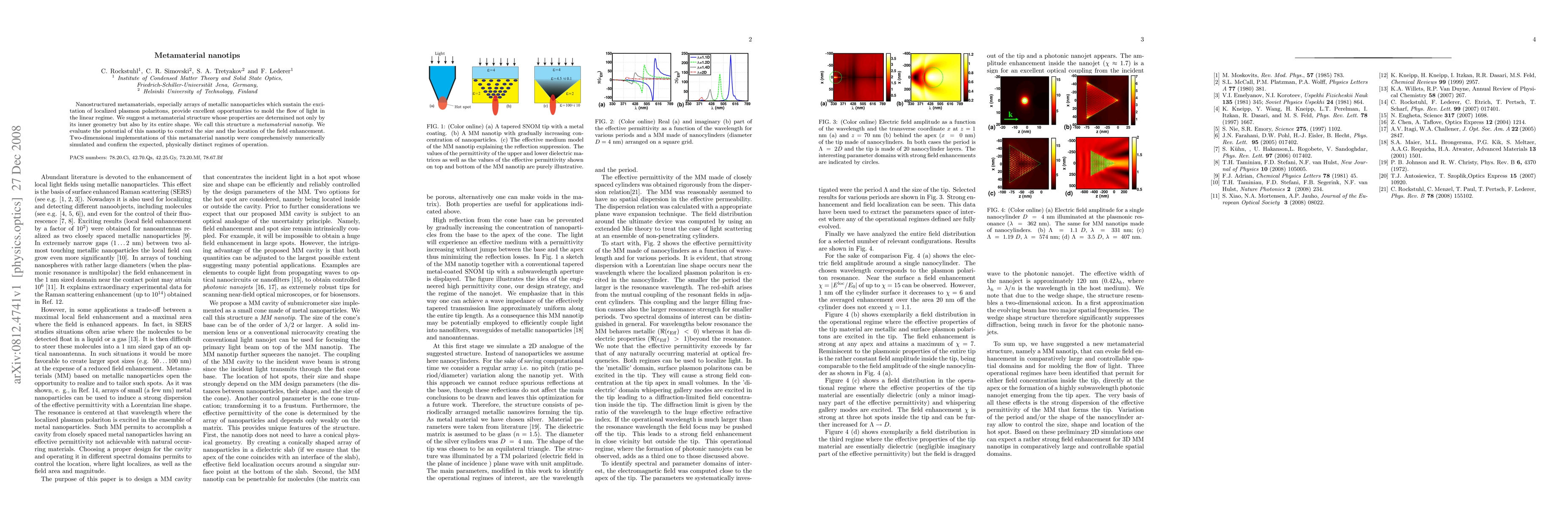 Researchers have developed a new material called a metamaterial nanotip that can control light in unique ways, allowing for precise manipulation of field enhancement size and location.