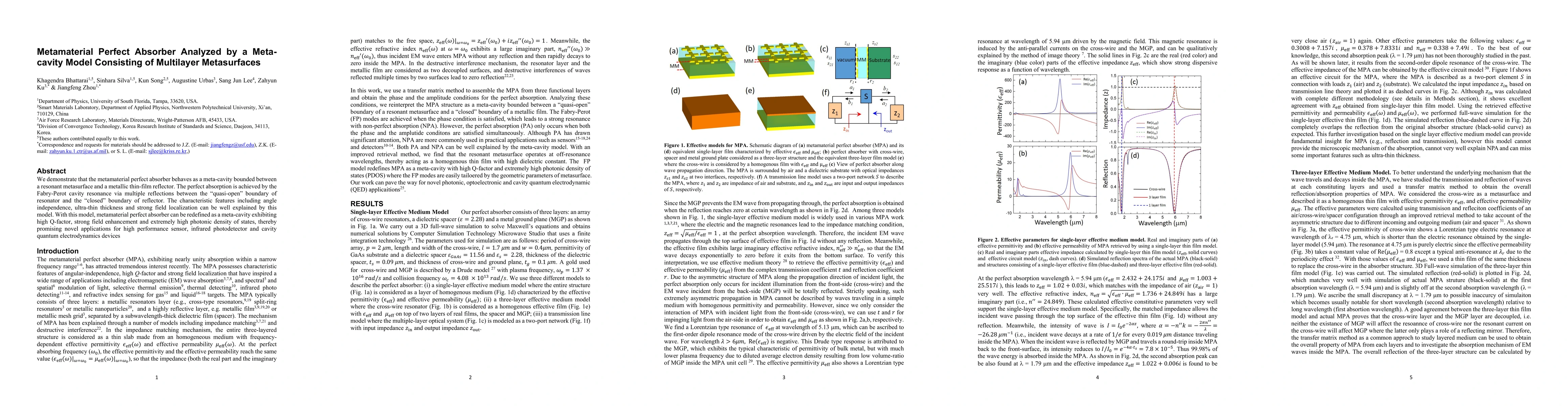 This paper proposes a meta-cavity model for metamaterial perfect absorbers, showing that they function as cavities bounded by a resonant metasurface and a metallic reflector, achieving perfect absorption through Fabry-Perot resonance. This model explains their angle-independent, ultra-thin, and highly localized field characteristics, and suggests potential applications in sensors, photodetectors, and quantum electrodynamics.