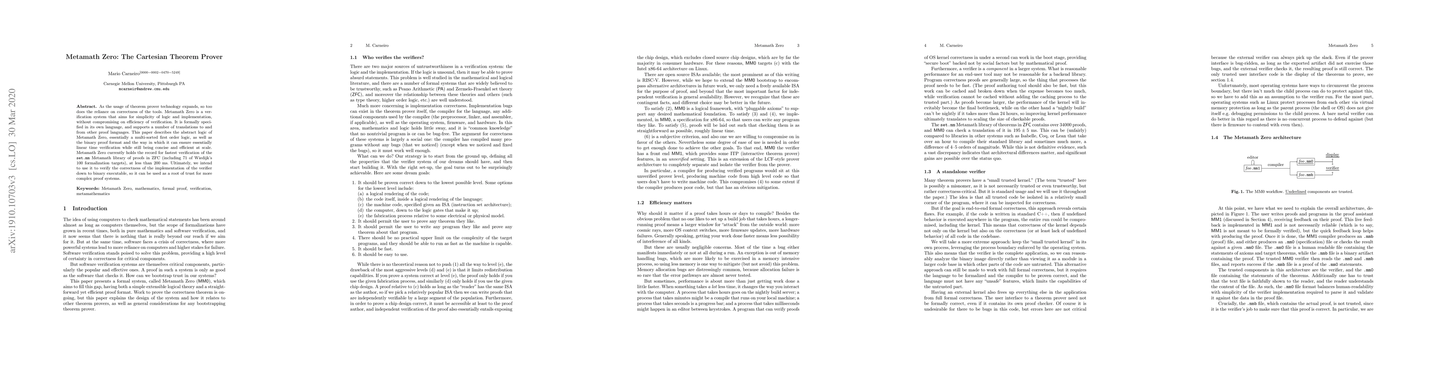 Metamath Zero is a simple yet efficient theorem prover based on multi-sorted first order logic, achieving record-breaking fast verification times for the $\mathtt{set.mm}$ library. It aims to serve as a root of trust for complex proof systems by verifying its own implementation correctness.