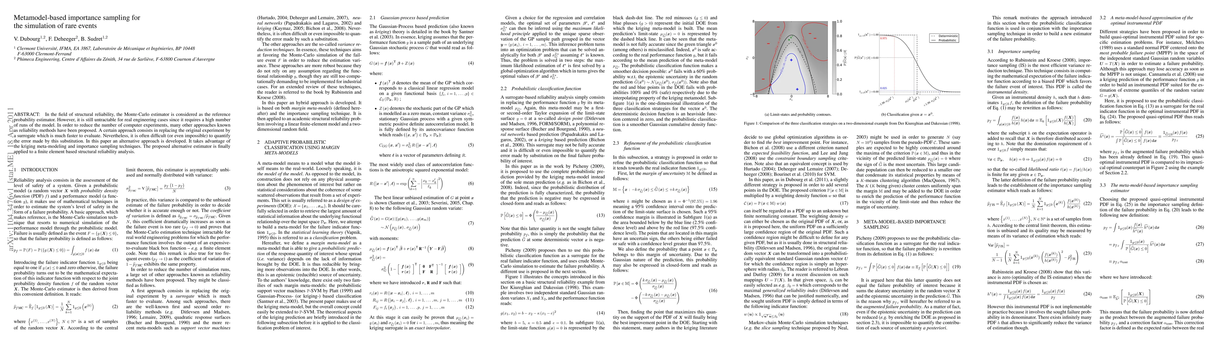 This paper proposes a metamodel-based importance sampling method to efficiently simulate rare events in structural reliability analysis, leveraging kriging meta-models to reduce the number of costly simulations while maintaining accuracy. The method is applied to finite element-based structural reliability analysis, demonstrating its effectiveness.