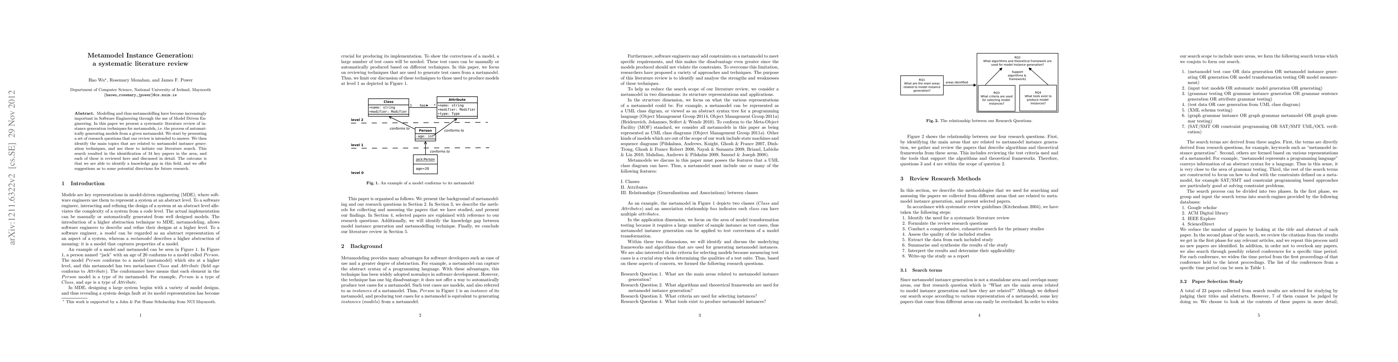 This systematic literature review examines metamodel instance generation techniques in Model Driven Engineering, identifying 34 key papers to explore current methods and highlight a knowledge gap, offering directions for future research.