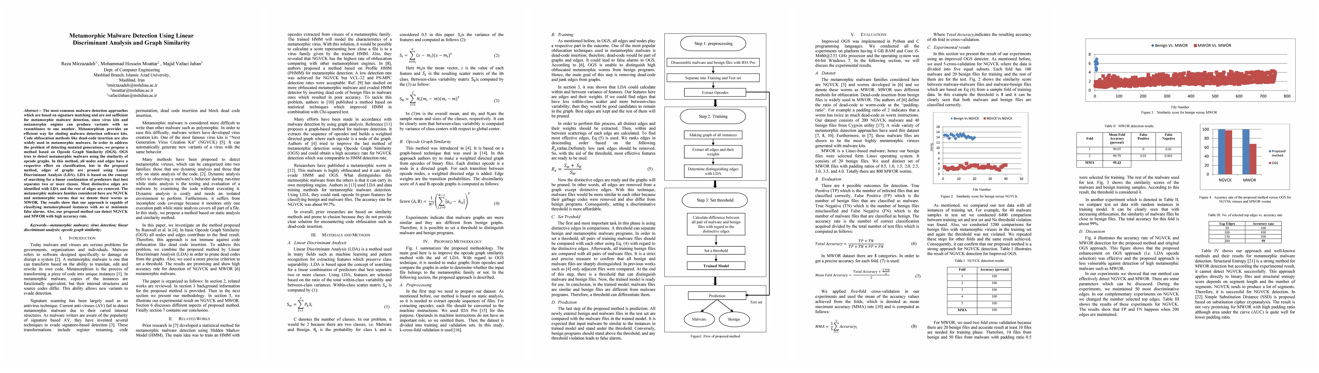 This paper proposes a novel method for detecting metamorphic malware using Opcode Graph Similarity (OGS) and Linear Discriminant Analysis (LDA) to prune graph edges, enhancing detection accuracy. The method effectively classifies mutated malware variants, achieving high accuracy in detecting NGVCK and MWOR families with minimal false alarms.