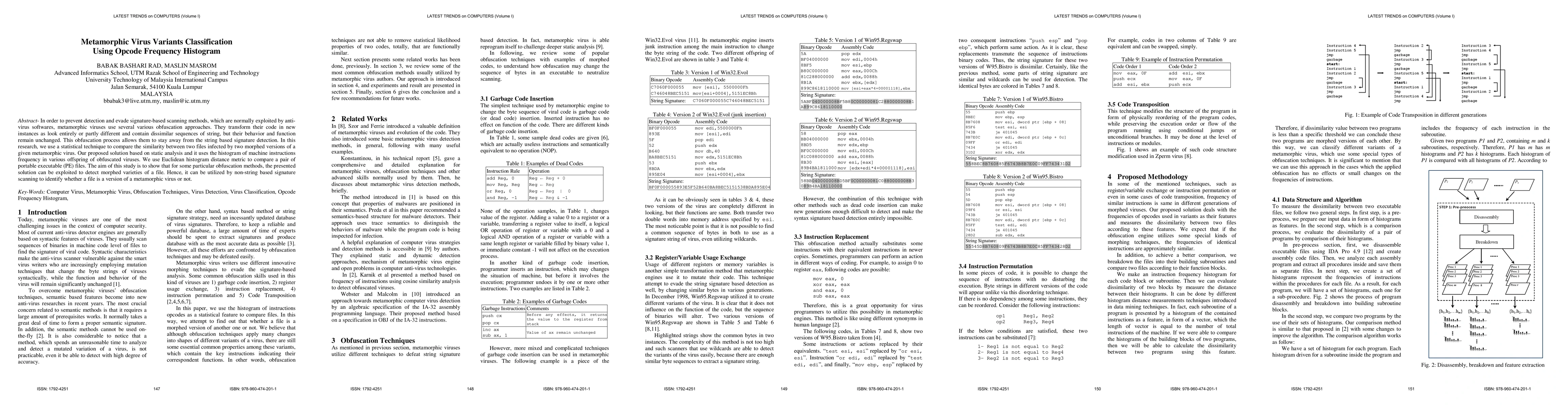 This research proposes a method to classify metamorphic virus variants using opcode frequency histograms. It employs static analysis and Euclidean histogram distance to compare machine instruction frequencies in obfuscated virus instances, aiming to detect morphed versions without relying on string-based signatures.