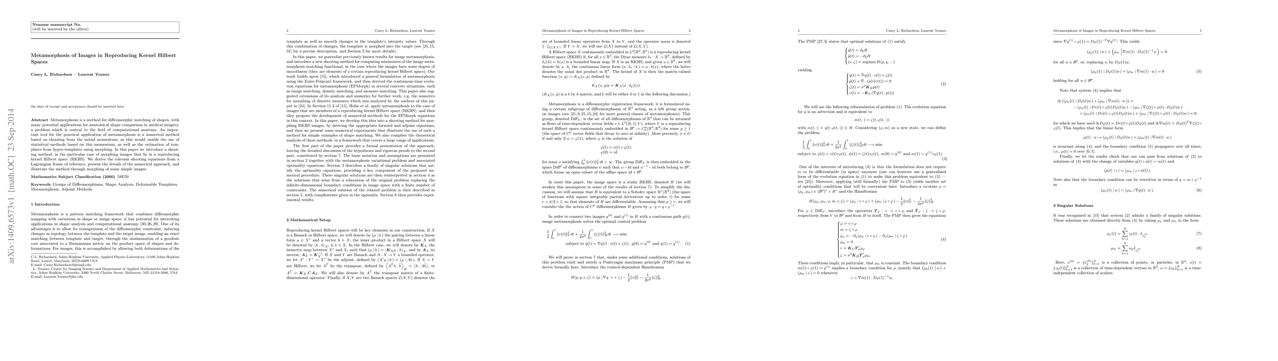Metamorphosis is a method for diffeomorphic matching of shapes, with many potential applications for anatomical shape comparison in medical imagery, a problem which is central to the field of computational anatomy. An important tool for the practical application of metamorphosis is a numerical method based on shooting from the initial momentum, as this would enable the use of statistical methods based on this momentum, as well as the estimation of templates from hyper-templates using morphing. In this paper we introduce a shooting method, in the particular case of morphing images that lie in a reproducing kernel Hilbert space (RKHS). We derive the relevant shooting equations from a Lagrangian frame of reference, present the details of the numerical approach, and illustrate the method through morphing of some simple images.