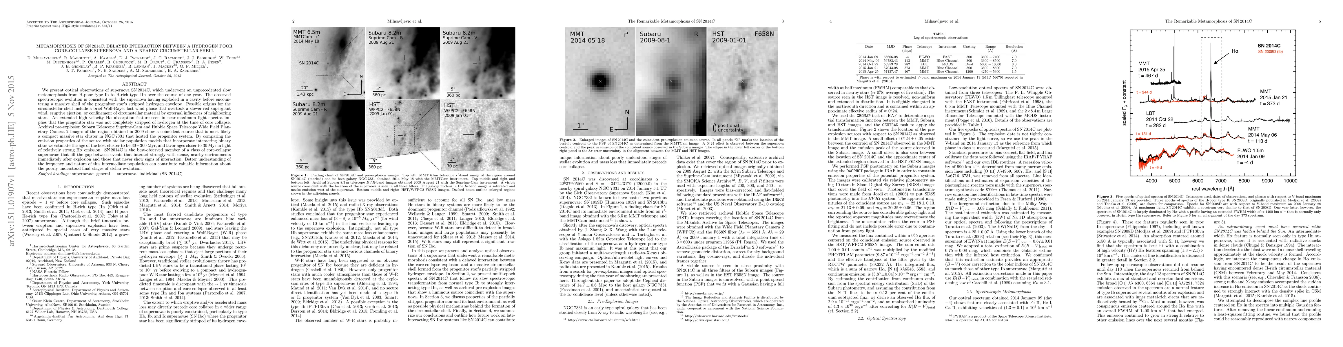 SN 2014C underwent a slow transformation from a hydrogen-poor to hydrogen-rich supernova over a year, likely due to interaction with a massive shell of stripped hydrogen envelope. The discovery sheds light on an intermediate population of core-collapse supernovae that interact with dense environments.