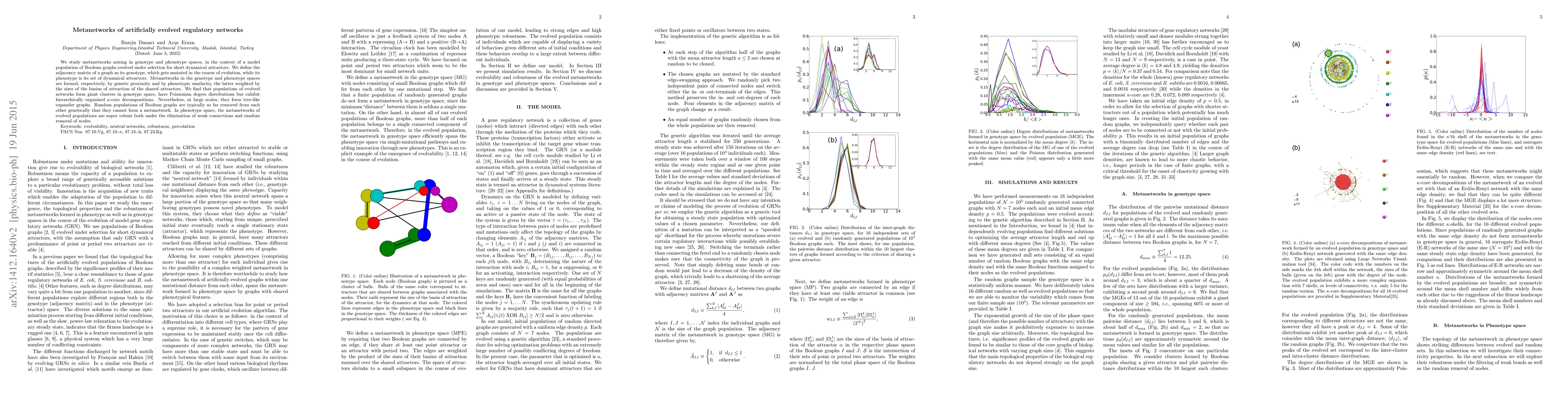 This paper explores metanetworks in genotype and phenotype spaces of Boolean graphs evolved under selection for short dynamical attractors. It finds that evolved networks form large clusters in genotype space with hierarchical structures and exhibit robustness in phenotype space despite random perturbations.