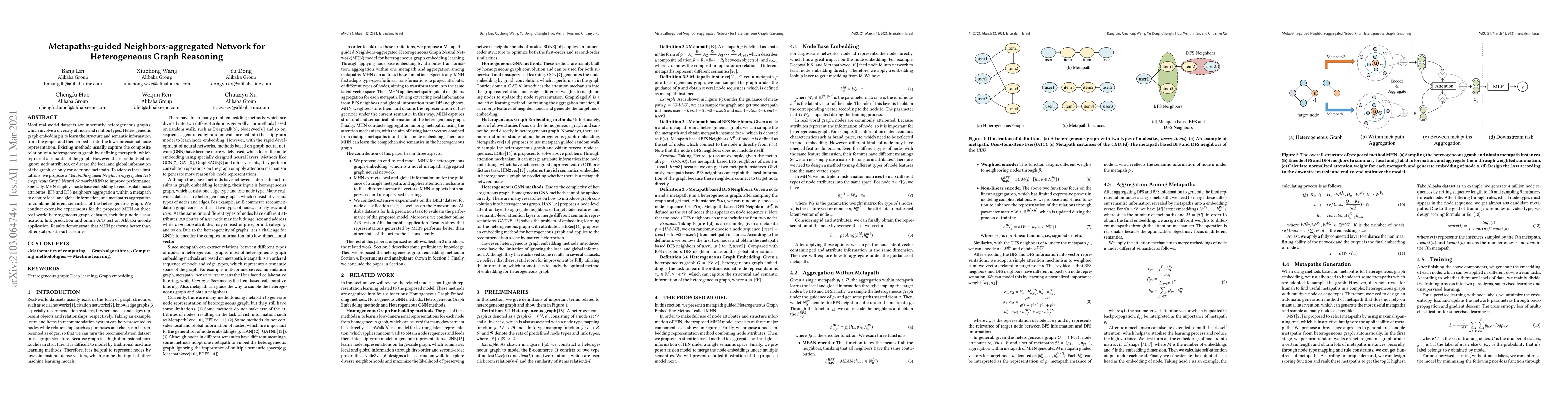 The paper proposes a Metapaths-guided Neighbors-aggregated Heterogeneous Graph Neural Network (MHN) to improve heterogeneous graph embedding by incorporating node attributes, local and global information, and metapath aggregation. Experiments show MHN outperforms other methods in node classification, link prediction, and real-world applications.