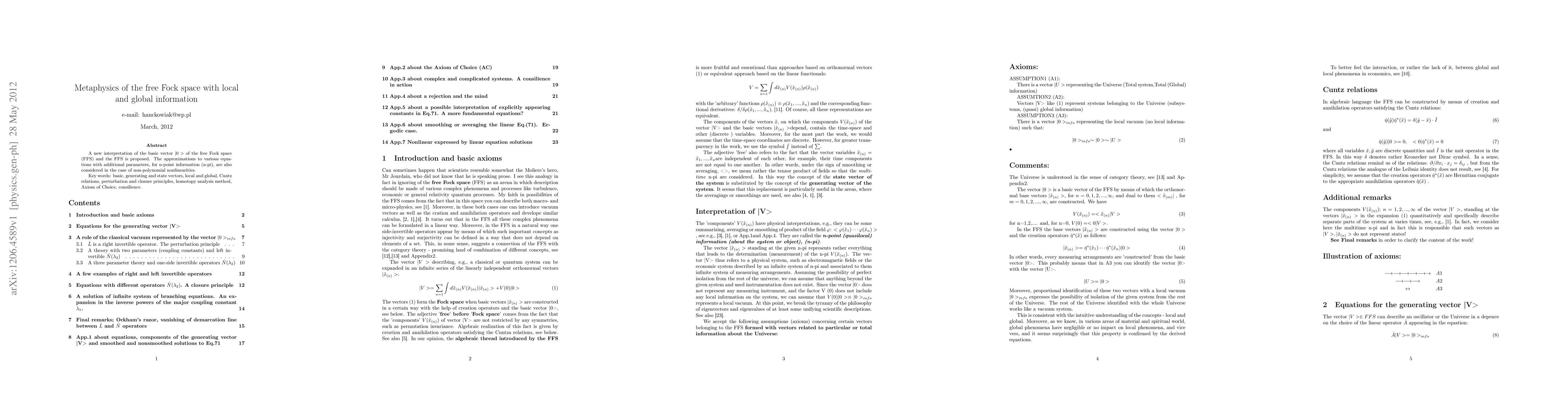 A new interpretation of the basic vector |0> of the free Fock space (FFS) and the FFS is proposed. The approximations to various equations with additional parameters, for n-point information (n-pi), are also considered in the case of non-polynomial nonlinearities.