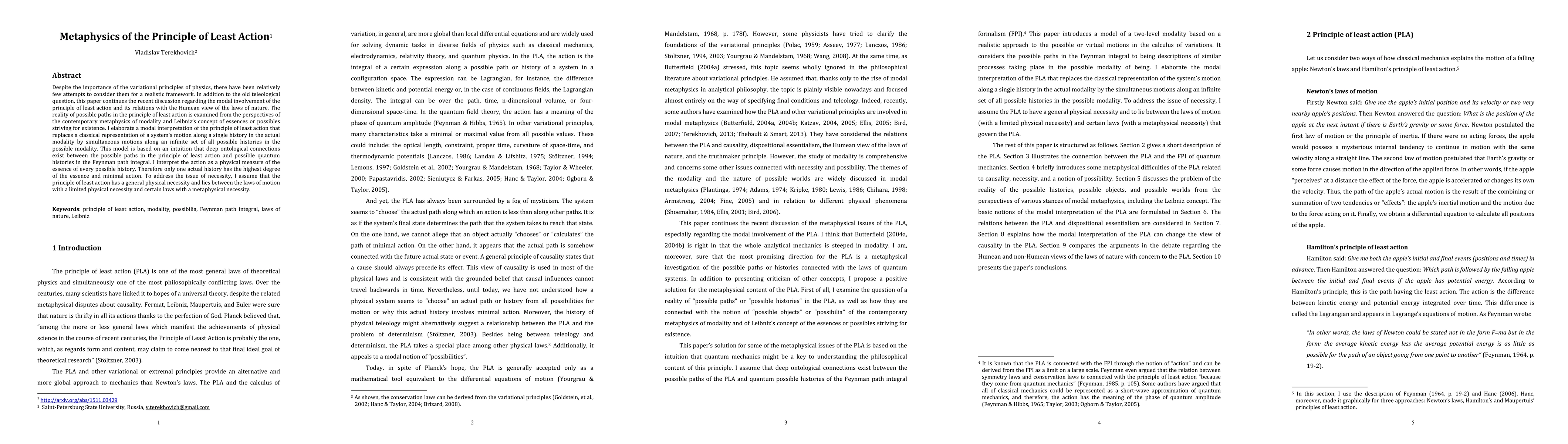 This paper explores the metaphysical implications of the principle of least action, proposing a modal interpretation that considers all possible paths rather than a single actual history. It suggests a connection between these paths and quantum histories, viewing the action as a measure of the essence of each possible history, with the actual path possessing the highest essence and minimal action.