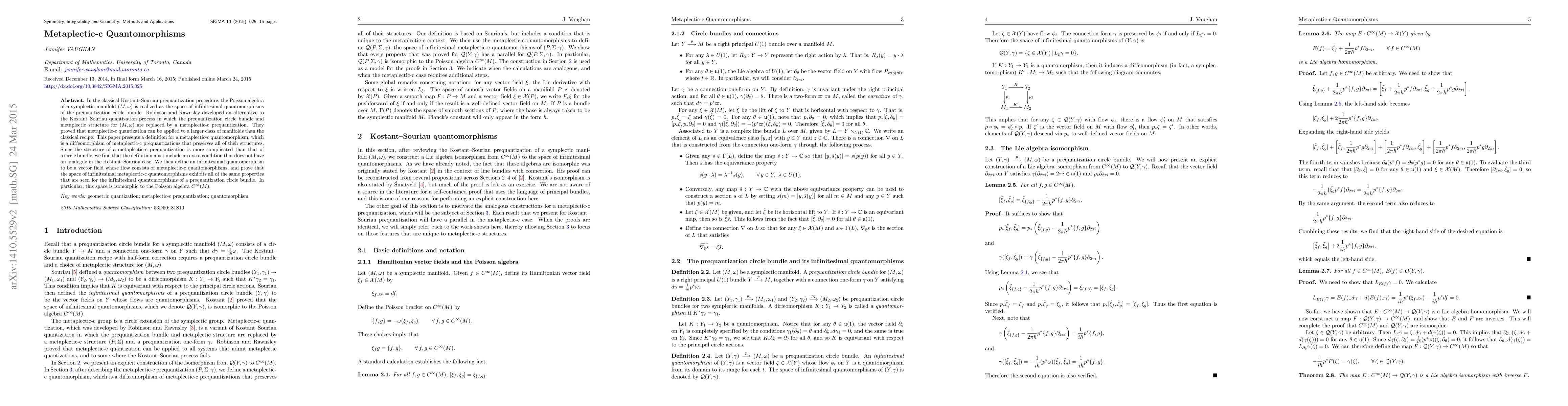 This paper introduces metaplectic-c quantomorphisms, which are diffeomorphisms preserving the structures of metaplectic-c prequantizations, expanding on the Robinson and Rawnsley's alternative quantization method. It proves the space of infinitesimal metaplectic-c quantomorphisms is isomorphic to the Poisson algebra $C^\infty(M)$, similar to the classical prequantization circle bundle.