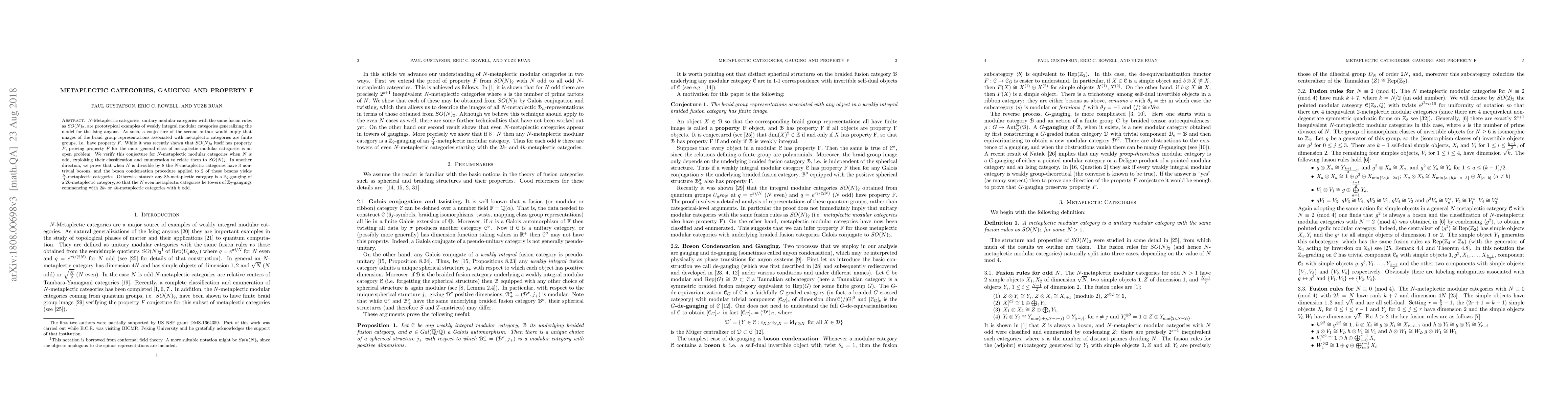 The paper introduces a systematic approach to proving Property F for N-metaplectic categories using Galois conjugation and twisting, and establishes a connection between metaplectic categories and Z2-gaugings.