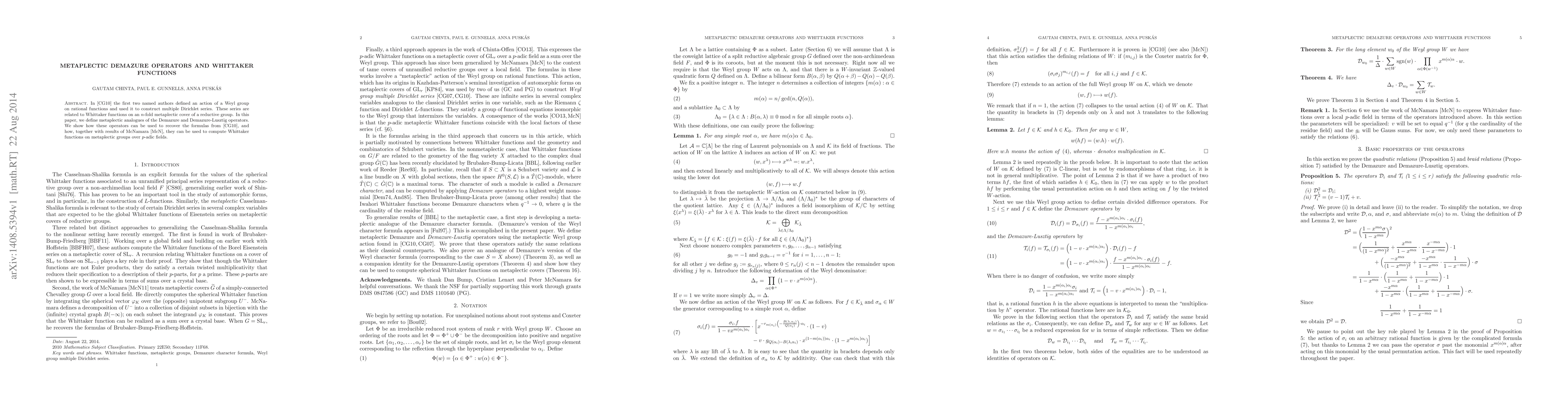 This paper defines metaplectic analogues of Demazure and Demazure-Lusztig operators and demonstrates their application in computing Whittaker functions on metaplectic groups over p-adic fields, building on prior work relating these functions to multiple Dirichlet series.