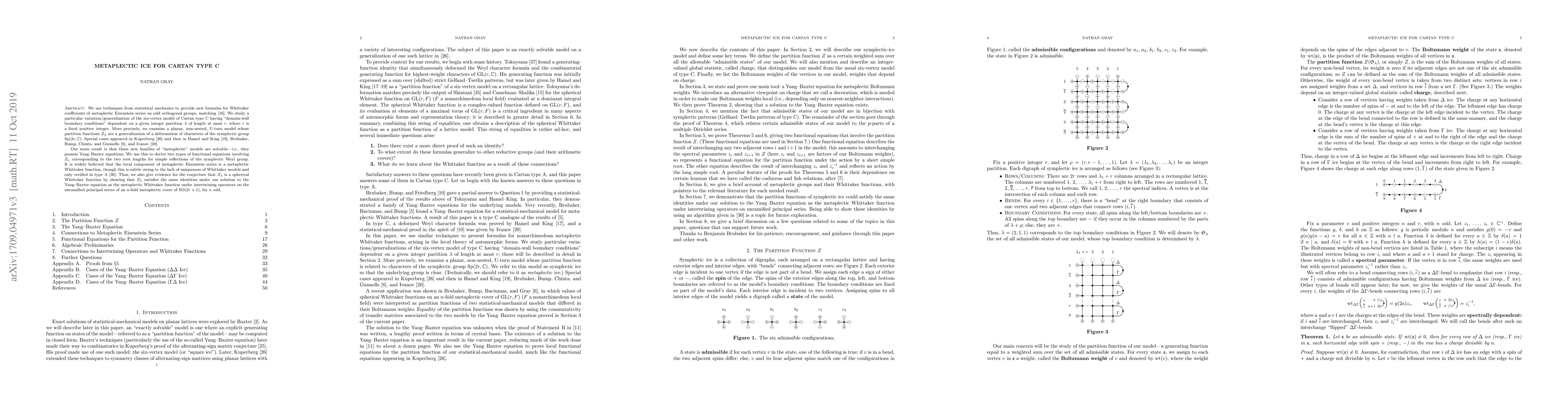 We use techniques from statistical mechanics to provide new formulas for Whittaker coefficients of metaplectic Eisenstein series on odd orthogonal groups, matching Friedberg and Zhang. We study a particular variation/generalization of the six-vertex model of Cartan type C having "domain-wall boundary conditions" dependent on a given integer partition $\lambda$ of length at most $r$, where $r$ is a fixed positive integer. More precisely, we examine a planar, non-nested, U-turn model whose partition functions $Z_{\lambda}$ are a generalization of a deformation of characters of the symplectic group $\operatorname{Sp}(2r, \mathbb{C})$. Special cases appeared in: Kuperberg; Hamel and King; Brubaker, Bump, Chinta, and Gunnells; Ivanov. Our main result is that these new families of "metaplectic" models are solvable---i.e., they possess Yang--Baxter equations. We use this to derive two types of functional equations involving $Z_{\lambda}$ corresponding to the two root lengths for simple reflections of the symplectic Weyl group. It is widely believed that the local component of metaplectic Eisenstein series is a metaplectic Whittaker function, though this is subtle owing to the lack of uniqueness of Whittaker models and only verified in type A by McNamara. Thus, we also give evidence for the conjecture that $Z_{\lambda}$ is a spherical Whittaker function by showing that $Z_{\lambda}$ satisfies the same identities under our solution to the Yang--Baxter equation as the metaplectic Whittaker function under intertwining operators on the unramified principal series of an $n$-fold metaplectic cover of $\operatorname{SO}(2r + 1)$, for $n$ odd.