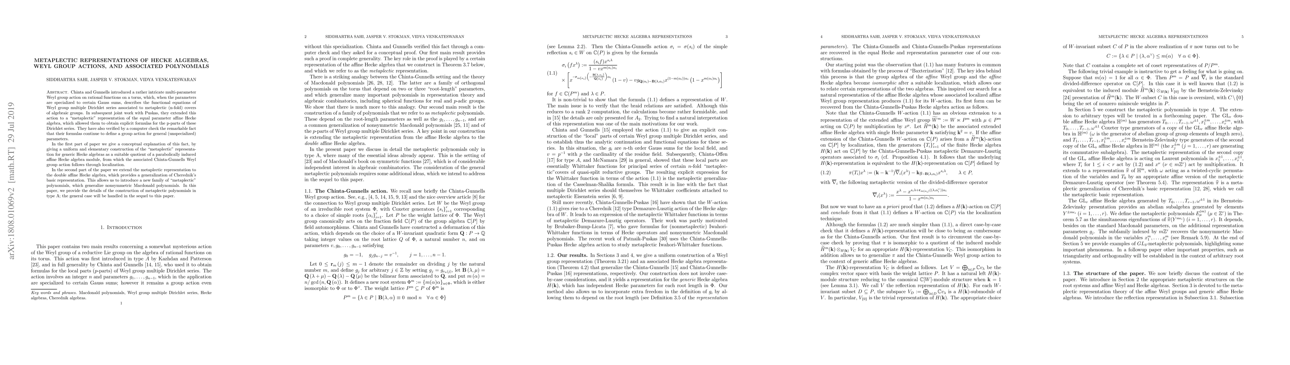 Chinta and Gunnells introduced a rather intricate multi-parameter Weyl group action on rational functions on a torus, which, when the parameters are specialized to certain Gauss sums, describes the functional equations of Weyl group multiple Dirichlet series associated to metaplectic (n-fold) covers of algebraic groups. In subsequent joint work with Puskas, they extended this action to a "metaplectic" representation of the equal parameter affine Hecke algebra, which allowed them to obtain explicit formulas for the p-parts of these Dirichlet series. They have also verified by a computer check the remarkable fact that their formulas continue to define a group action for general (unspecialized) parameters. In the first part of paper we give a conceptual explanation of this fact, by giving a uniform and elementary construction of the "metaplectic" representation for generic Hecke algebras as a suitable quotient of a parabolically induced affine Hecke algebra module, from which the associated Chinta-Gunnells Weyl group action follows through localization. In the second part of the paper we extend the metaplectic representation to the double affine Hecke algebra, which provides a generalization of Cherednik's basic representation. This allows us to introduce a new family of "metaplectic" polynomials, which generalize nonsymmetric Macdonald polynomials. In this paper, we provide the details of the construction of metaplectic polynomials in type A; the general case will be handled in the sequel to this paper.
